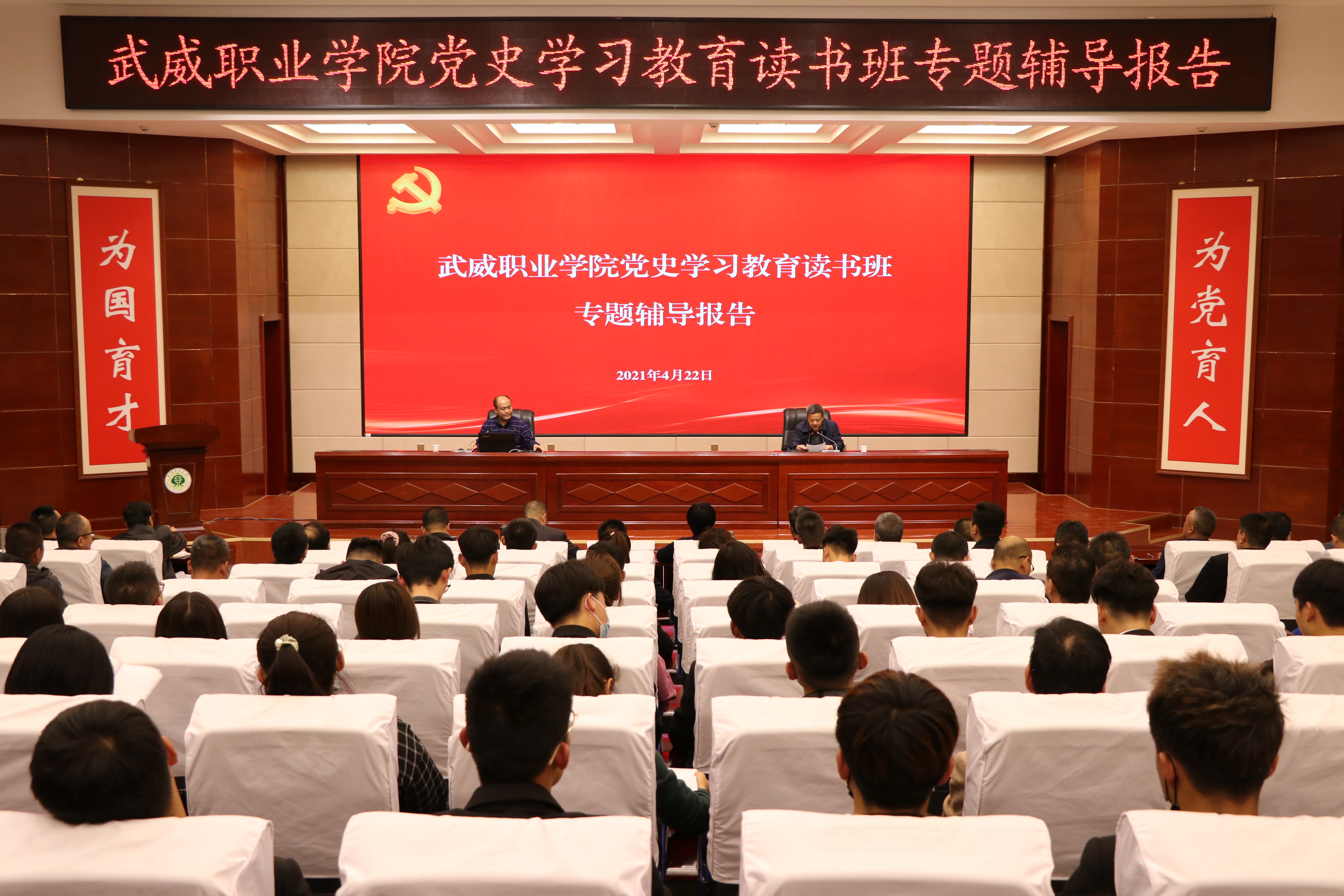 按照學(xué)院黨委理論學(xué)習(xí)中心組黨史學(xué)習(xí)教育讀書班安排,4月22日下午,讀書班邀請市委黨校講師、市黨史學(xué)習(xí)教育宣講團(tuán)成員魏樂儀作黨史學(xué)習(xí)教育專題輔導(dǎo)報告。學(xué)院領(lǐng)導(dǎo)班子成員、全體中層干部、各基層黨組織書記、專職組織員、支委委員和師生代表共220人參加報告會。黨委書記、院長趙明主持報告會。