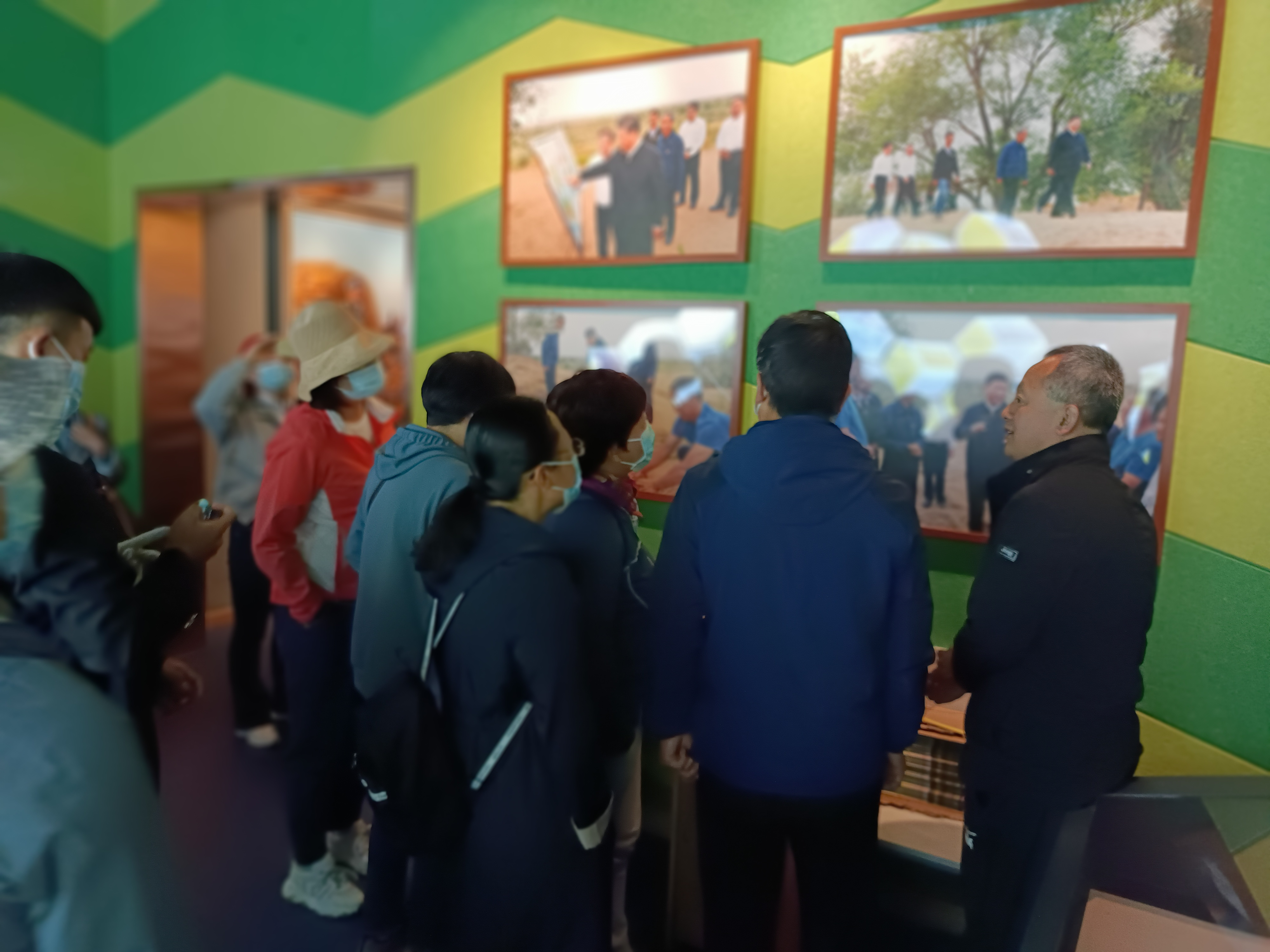 在八步沙六老漢治沙紀(jì)念館,大家現(xiàn)場(chǎng)參觀基本陳列、詳細(xì)了解了以“六老漢”為代表的古浪八步沙林場(chǎng)職工艱辛的治沙歷程,學(xué)習(xí)感受時(shí)代楷?!傲蠞h”三代人治沙的先進(jìn)事跡。