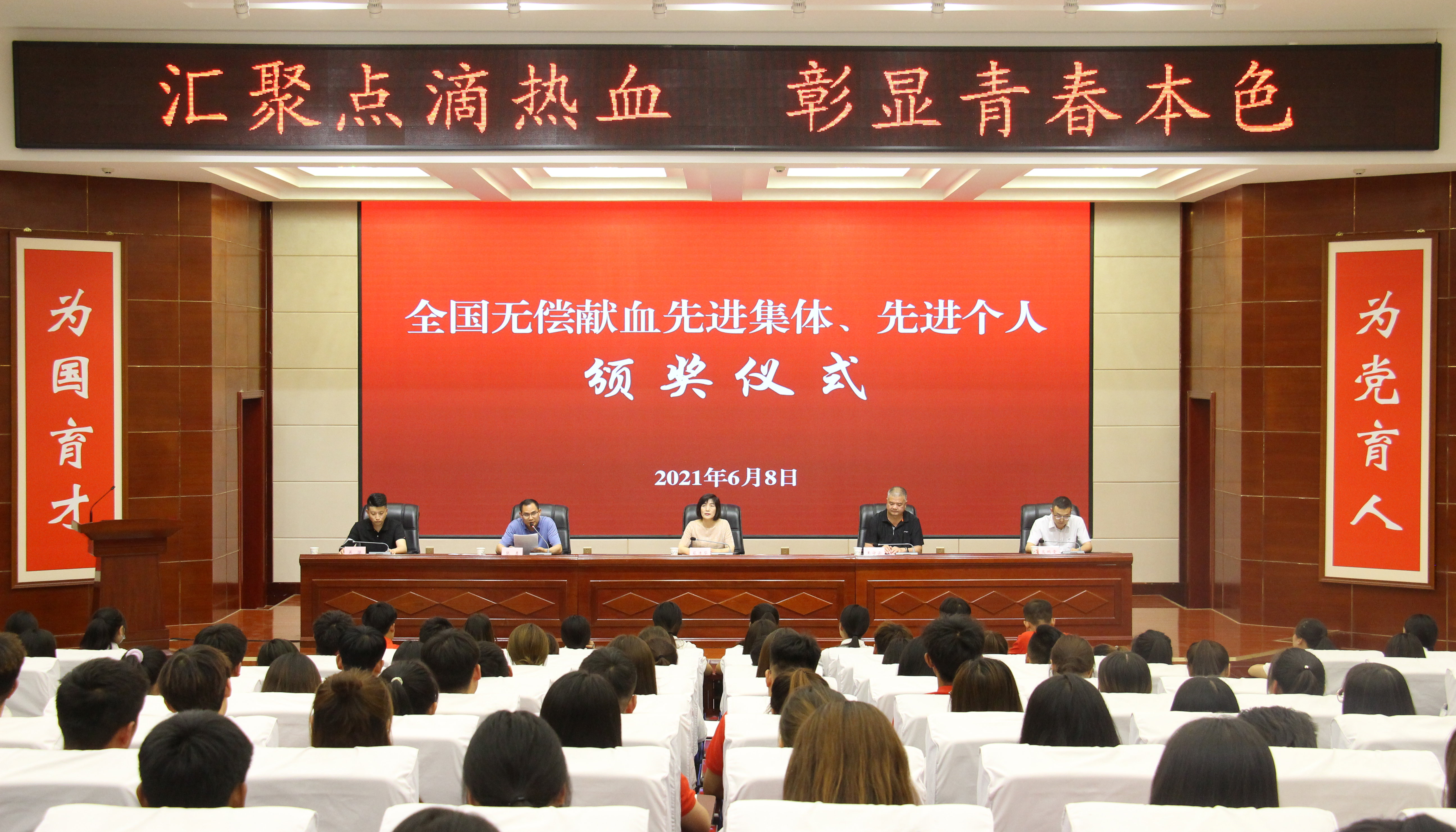 6月8日下午,武威市中心血站、武威市紅十字會(huì)在學(xué)院菁英廳召開(kāi)全國(guó)無(wú)償獻(xiàn)血先進(jìn)集體、先進(jìn)個(gè)人頒獎(jiǎng)儀式。武威市中心血站站長(zhǎng)蔡清華,武威市紅十字會(huì)專職副會(huì)長(zhǎng)張勇,學(xué)院黨委委員、副院長(zhǎng)王守云出席頒獎(jiǎng)儀式,學(xué)院獻(xiàn)血志愿者代表220人參加活動(dòng)。儀式由學(xué)生工作處、院團(tuán)委負(fù)責(zé)人高鵬堂主持。