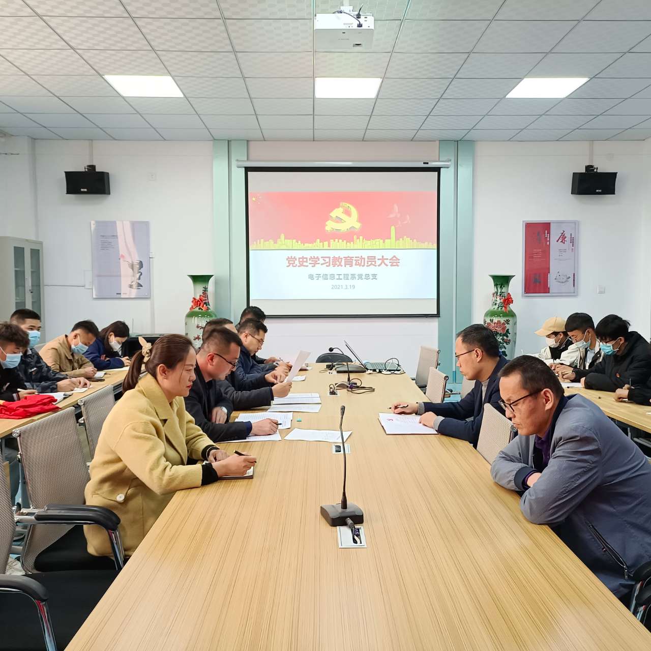 根據(jù)學(xué)院黨委統(tǒng)一安排部署,3月19日,電子信息工程系黨總支召開黨史學(xué)習(xí)教育動(dòng)員大會(huì),全體教師黨員、學(xué)生入黨積極分子參加會(huì)議。會(huì)議由黨總支書記袁青年主持。