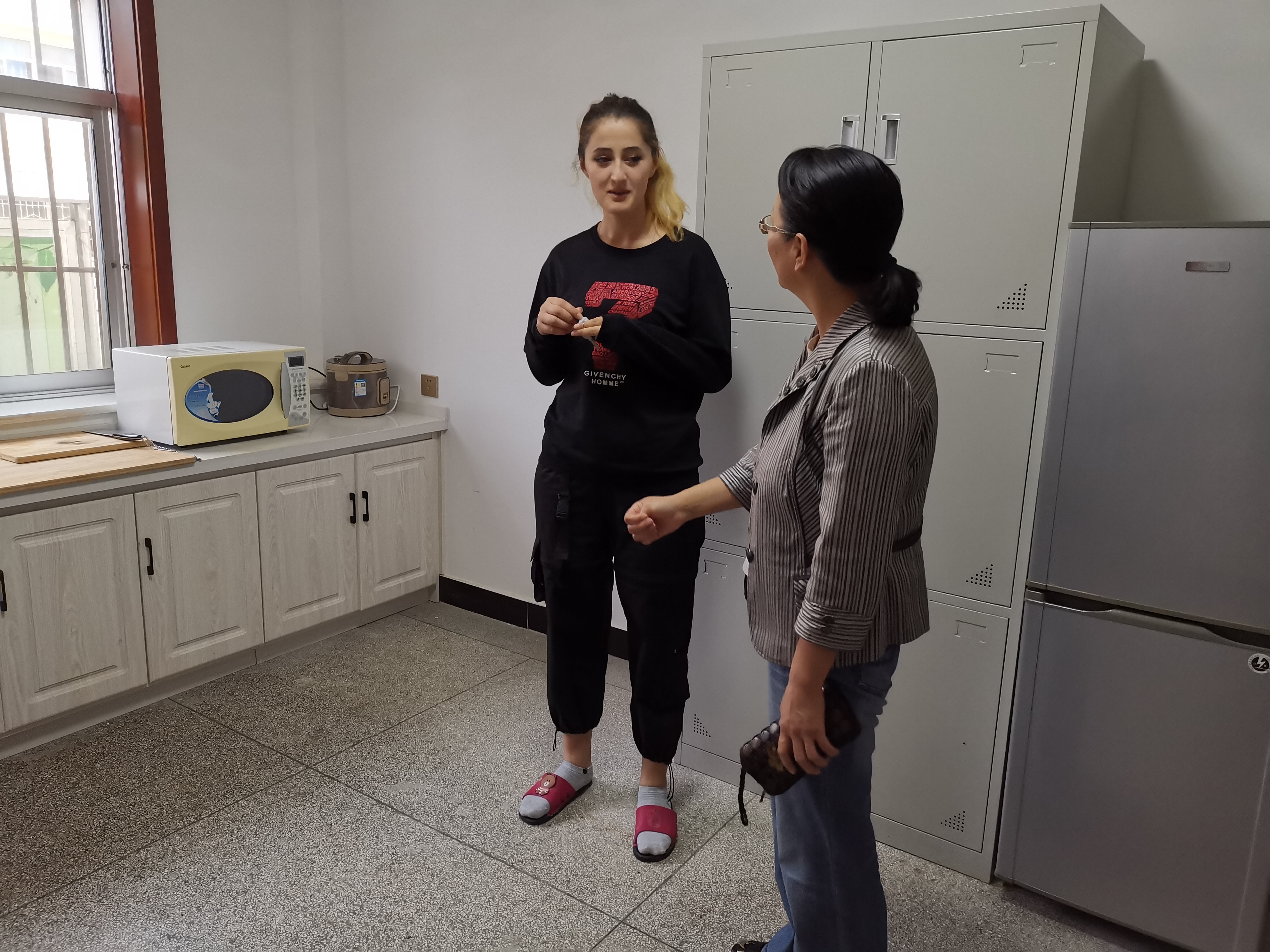 田迎春先后深入2019級(jí)、2021級(jí)來(lái)華留學(xué)生宿舍、廚房,查看、了解留學(xué)生住宿、生活情況,向留學(xué)生送上慰問(wèn)品。在留學(xué)生宿舍,田迎春與留學(xué)生親切交談,關(guān)切詢問(wèn)留學(xué)生日常生活、專業(yè)學(xué)習(xí)、漢語(yǔ)學(xué)習(xí)等情況。她向留學(xué)生簡(jiǎn)要介紹了中秋節(jié)、國(guó)慶節(jié)的來(lái)歷、風(fēng)俗及意義,留學(xué)生們對(duì)中國(guó)傳統(tǒng)文化表現(xiàn)出濃厚興趣;她指出,留學(xué)生背井離鄉(xiāng)來(lái)華求學(xué),遇到困難在所難免,但要堅(jiān)定信心,學(xué)院會(huì)盡力滿足留學(xué)生學(xué)習(xí)、生活的需要;她鼓勵(lì)留學(xué)生積極主動(dòng)融入學(xué)院大家庭,廣交朋友,在融入、融合過(guò)程中體會(huì)在華學(xué)習(xí)生活的樂(lè)趣;她希望留學(xué)生珍惜寶貴的來(lái)華學(xué)習(xí)的機(jī)會(huì),不僅要學(xué)好理論知識(shí),而且要學(xué)好操作技能,不僅要學(xué)好專業(yè)知識(shí),而且要學(xué)好優(yōu)秀中華文化,講好中國(guó)故事,向世界展示真實(shí)的中國(guó),爭(zhēng)做知華友華愛(ài)華的留學(xué)生,爭(zhēng)做中國(guó)與世界各國(guó)友好的使者。