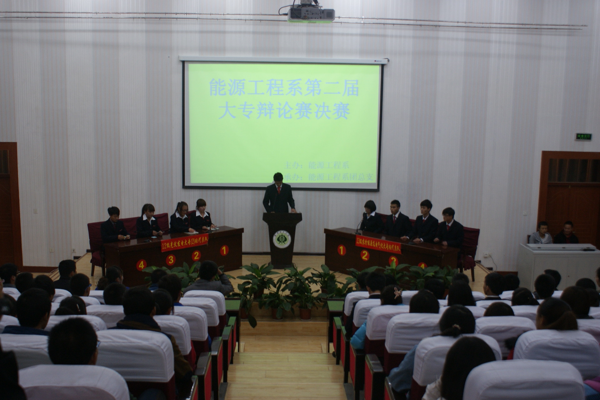 11月10日晚,能源工程系在東階梯教室成功舉辦了能源工程系第二屆大專生辯論賽三、四名和冠、亞軍爭奪戰(zhàn)。能源工程系全體老師和大一、大二學生共270人參加了本次決賽。本次比賽在班級初賽的基礎上有8支代表隊的32名選手代表班級參加了全系比賽,經過系部復賽、半決賽兩個階段的激烈競爭,最終有四支代表隊晉級決賽。
