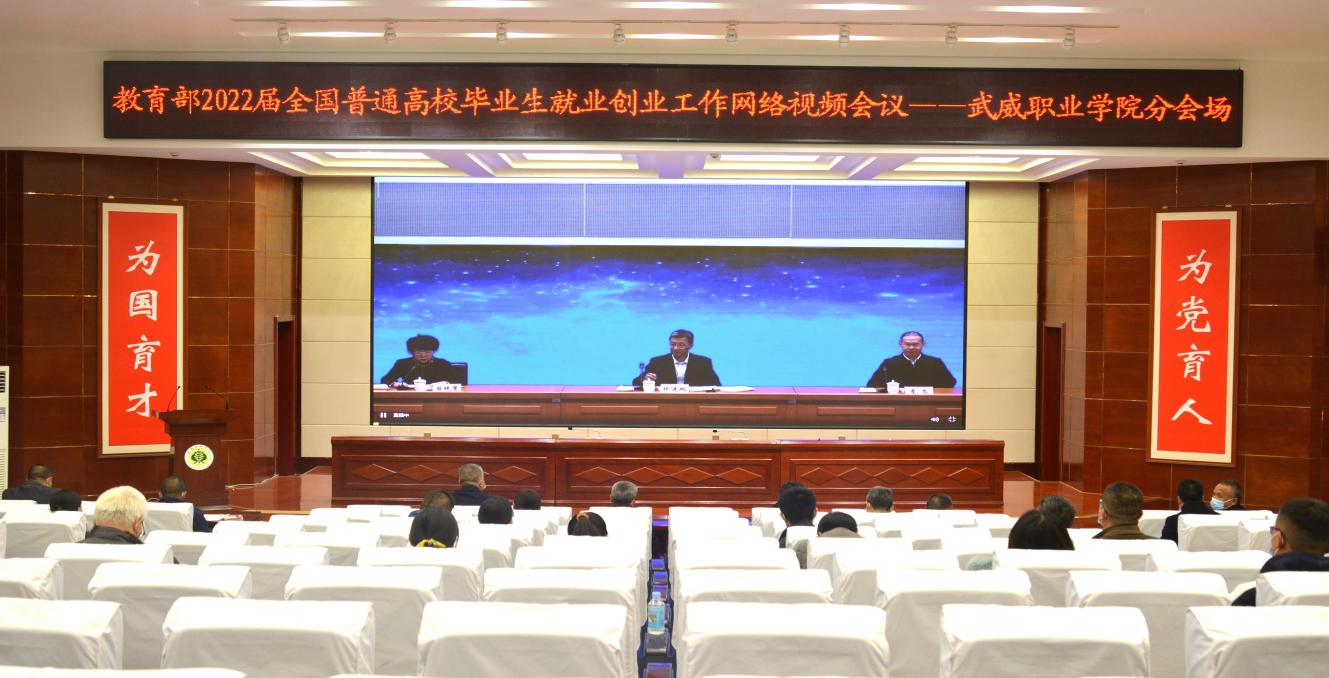 11月19日下午,教育部、人力資源社會(huì)保障部召開2022屆普通高校畢業(yè)生就業(yè)視頻會(huì)議。教育部黨組書記、部長(zhǎng)懷進(jìn)鵬,人力資源社會(huì)保障部黨組成員、副部長(zhǎng)李忠出席會(huì)議并講話,教育部黨組成員、副部長(zhǎng)翁鐵慧主持會(huì)議。我院設(shè)立武威職業(yè)學(xué)院分會(huì)場(chǎng),學(xué)院黨委書記、院長(zhǎng)趙明,副院長(zhǎng)王守云,招就處、雙創(chuàng)中心、學(xué)工處相關(guān)負(fù)責(zé)同志,各教學(xué)院系黨總支書記、主任、就業(yè)工作輔導(dǎo)員及畢業(yè)班班主任共計(jì)86人,在學(xué)院學(xué)生發(fā)展中心菁英廳集中參加網(wǎng)絡(luò)視頻會(huì)議。