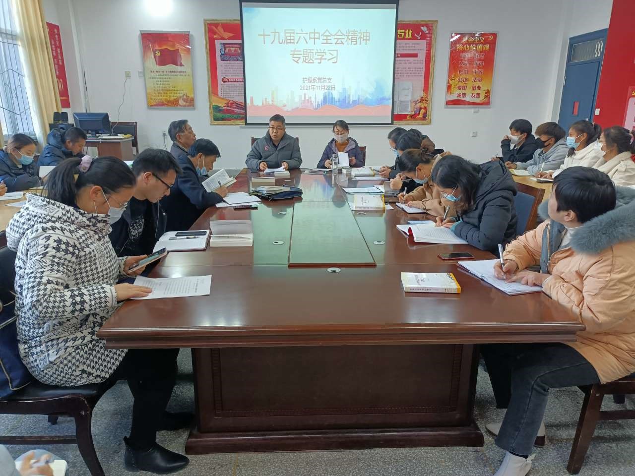 11月22日下午,護理系黨總支組織召開黨史學習教育集中學習會議,圍繞“學習貫徹黨的十九屆六中全會精神”進行了專題學習并集中交流研討。