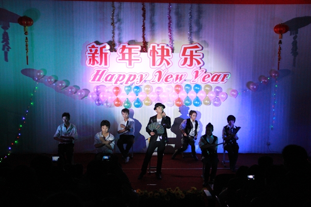我系趙磊老師的薩克斯獨奏節(jié)奏明朗,富有磁力,優(yōu)美的旋律深深地吸引了全體觀眾。12級光熱班的張新輝,張一凡等同學(xué)反串《甄嬛傳》令現(xiàn)場的觀眾捧腹大笑。一首《祝福》的朗誦牽掛了所有觀眾,武術(shù)《中國功夫》令得全場驚呼,舞蹈《江南style》的精彩演出吸引了所有人的眼球。最后晚會在《同一首歌》的大合唱中緩緩落幕。