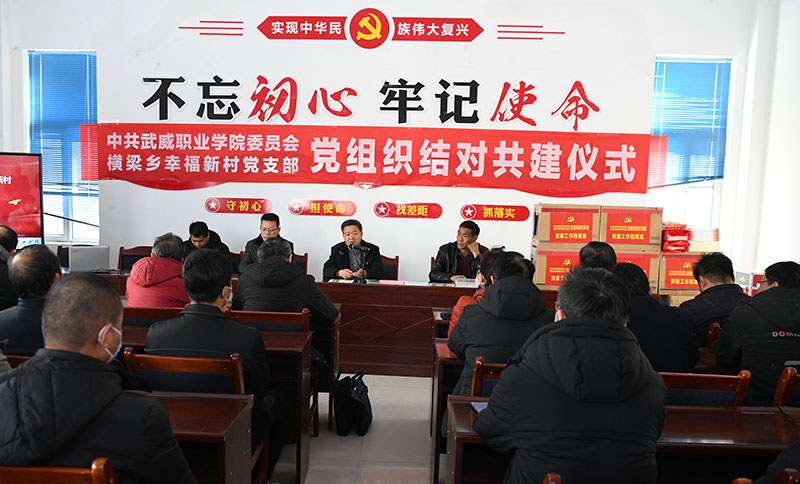 12月11日,學院黨委與康寧新村、幸福新村黨支部在康寧新村會議室舉行了黨組織結(jié)對共建捐贈活動,與2個村黨支部就結(jié)對共建工作進行了深入交流,捐贈了價值2000元的黨建用品。趙明表示,學院要發(fā)揮黨組織優(yōu)勢,在康寧新村、幸福新村幫建高質(zhì)量標準化2個黨員活動室,組織學院黨支部和幫扶村黨支部開展結(jié)對共建活動,探索鄉(xiāng)村振興新模式、新方法、新思路,形成可復制、可推廣的經(jīng)驗,使“黨建共建”成為鍛煉干部的重要平臺,助力推動古浪縣橫梁鄉(xiāng)康寧新村和幸福新村鄉(xiāng)村振興。趙明強調(diào),要進一步深化黨建引領(lǐng),將黨建工作融入鄉(xiāng)村振興的全過程,不斷完善“黨建+”模式,組織幫扶干部、駐村干部和幫扶村黨員深入開展黨史學習教育,扎實開展“我為群眾辦實事”,推進學院黨建與基層黨建水平共同提升,在鄉(xiāng)村振興中切實發(fā)揮好村黨支部戰(zhàn)斗堡壘作用和黨員先鋒模范作用。2個幫扶村黨支部書記表達了感謝,對共建工作提出建議。
