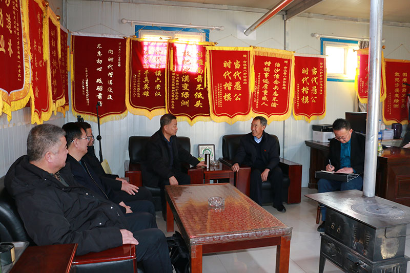 12月21日下午,趙明一行來到八步沙林場看望了學院思政課導師、全國勞動模范郭萬剛同志,趙明介紹了學院與八步沙林場剛剛共同獲得的首批甘肅省職業(yè)教育紅色文化研學旅行示范聯(lián)合基地,并邀請郭萬剛等治沙造林模范近期來校為師生做思政報告。趙明表示,學院將學習道德模范,大力弘揚八步沙六老漢“困難面前不低頭、敢把沙漠變綠洲的新時代武威精神”,進一步加強師生思想政治教育,教育廣大師生堅定理想信念、厚植愛國情懷、增強責任擔當,為全面建設(shè)社會主義現(xiàn)代化國家,實現(xiàn)中華民族偉大復興貢獻力量。