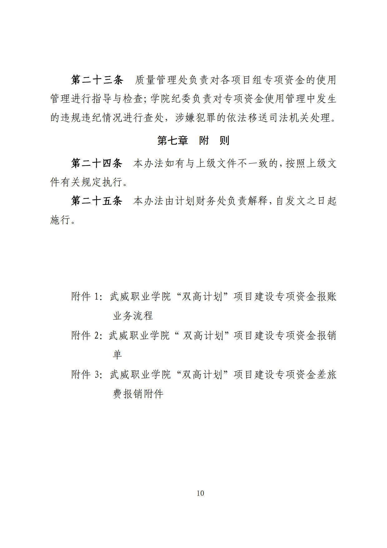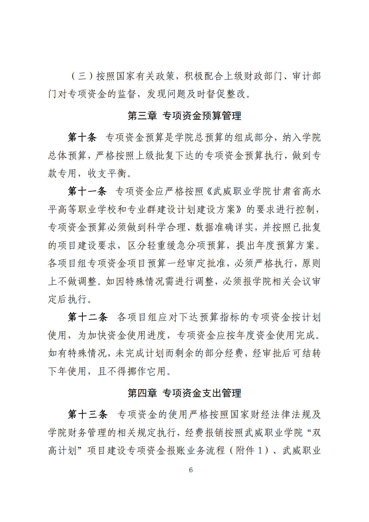 關(guān)于印發(fā)《武威職業(yè)學(xué)院“雙高計(jì)劃”項(xiàng)目建設(shè)專項(xiàng)資金管理辦法》的通知