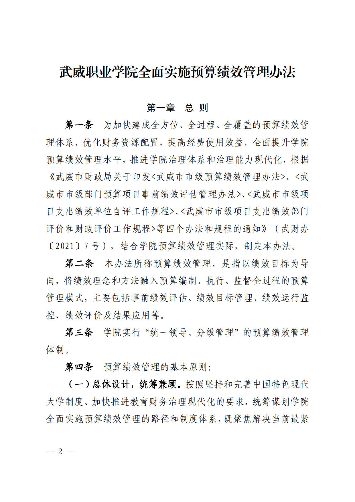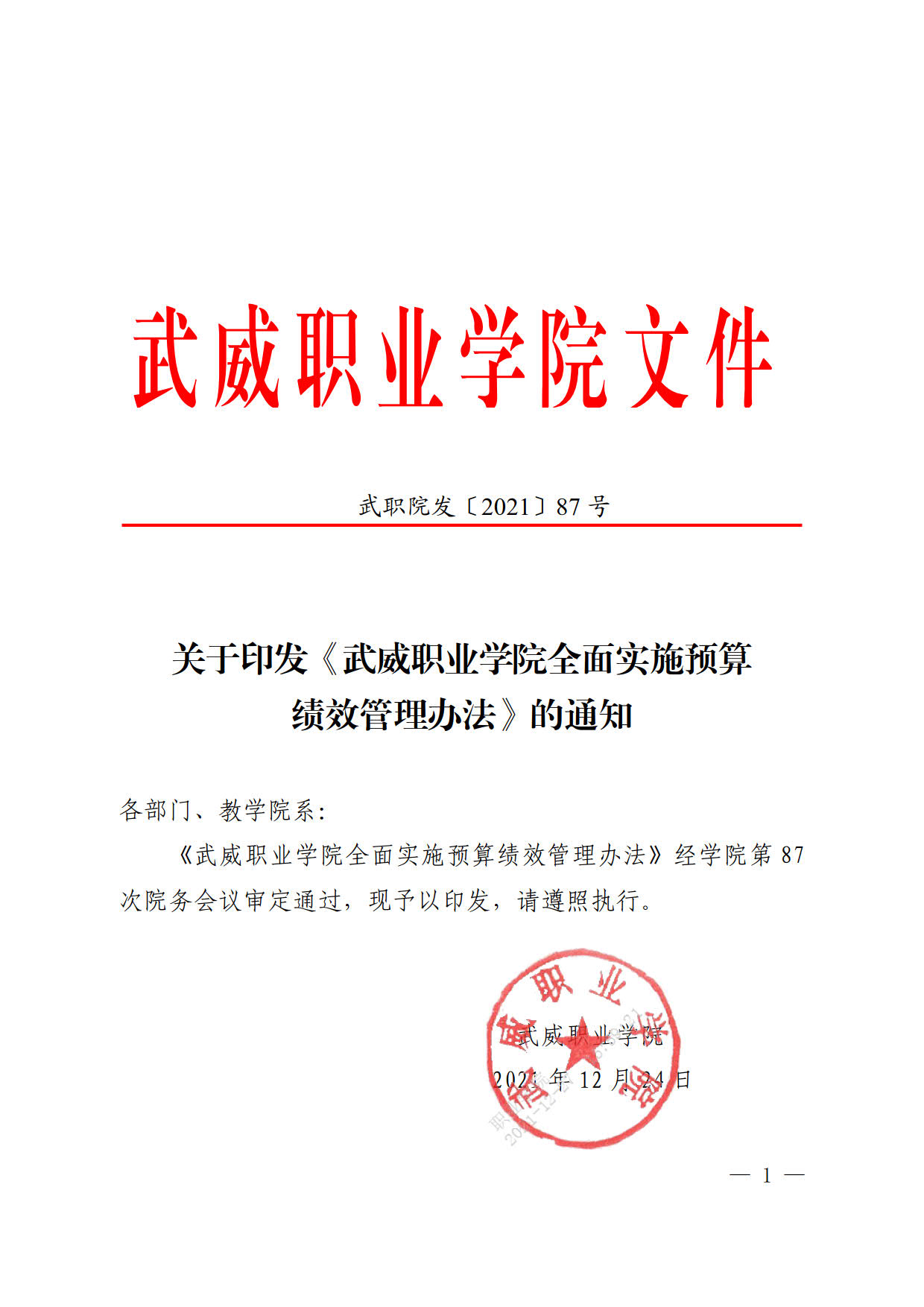 關(guān)于印發(fā)《武威職業(yè)學(xué)院全面實(shí)施預(yù)算績效管理辦法》的通知