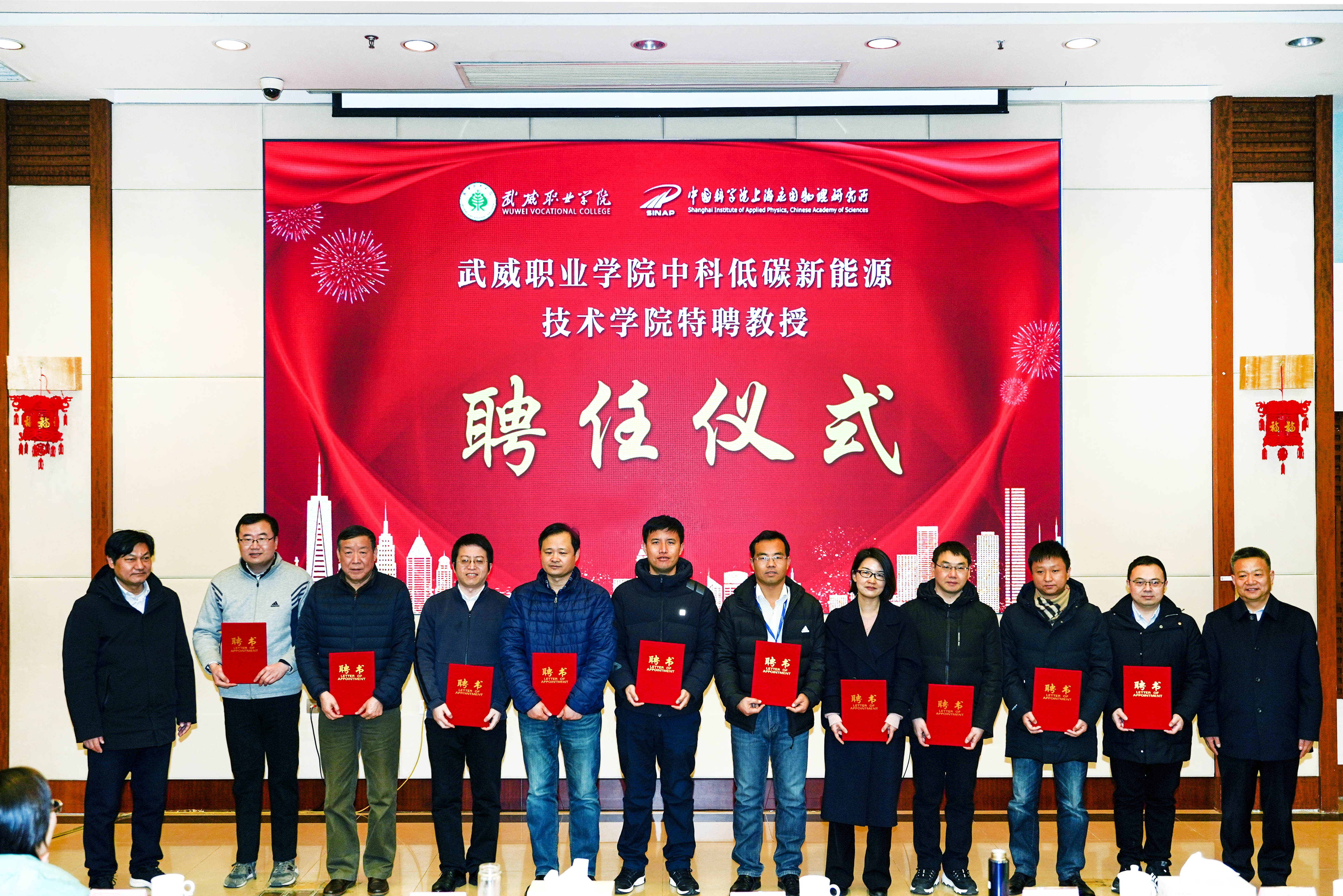 ??聘任儀式上,學(xué)院黨委副書記翟存祥宣讀了《武威職業(yè)學(xué)院 中國(guó)科學(xué)院上海應(yīng)用物理研究所關(guān)于續(xù)聘楊存忠等17名同志擔(dān)任中科低碳新能源技術(shù)學(xué)院特聘教授的通知》。隨后,上海應(yīng)用物理研究所所長(zhǎng)戴志敏,學(xué)院黨委書記、院長(zhǎng)趙明向17名特聘教授頒發(fā)了聘書。