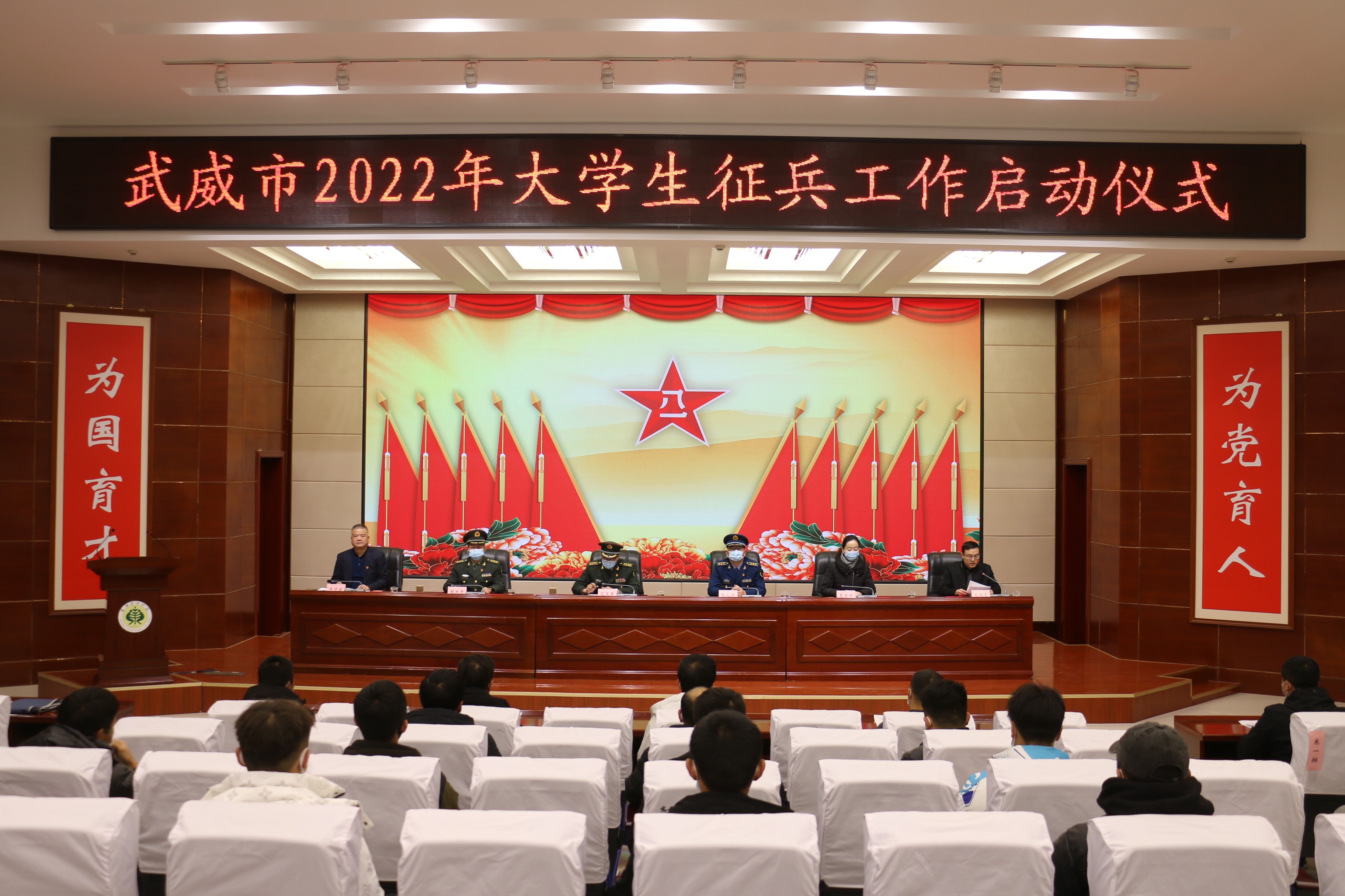 12月29日下午,武威市2022年大學(xué)生征兵工作啟動儀式在我院舉辦。武威軍分區(qū)司令員范玉芳、武威軍分區(qū)動員處處長張尖兵、武威市教育局副局長賈玉玲、涼州區(qū)人武部部長闞延貴,學(xué)院黨委委員、副院長王守云出席會議。學(xué)院各院系輔導(dǎo)員、2021年退役復(fù)學(xué)大學(xué)生代表和應(yīng)征報(bào)名學(xué)生代表參加了會議。會議由學(xué)生工作處負(fù)責(zé)人高鵬堂主持。會議采取線下進(jìn)行和線上同步直播的方式召開。