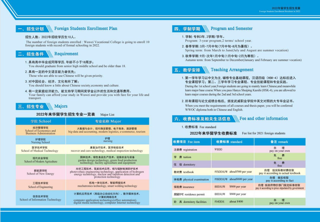 武威職業(yè)學院2022年留學生招生簡章