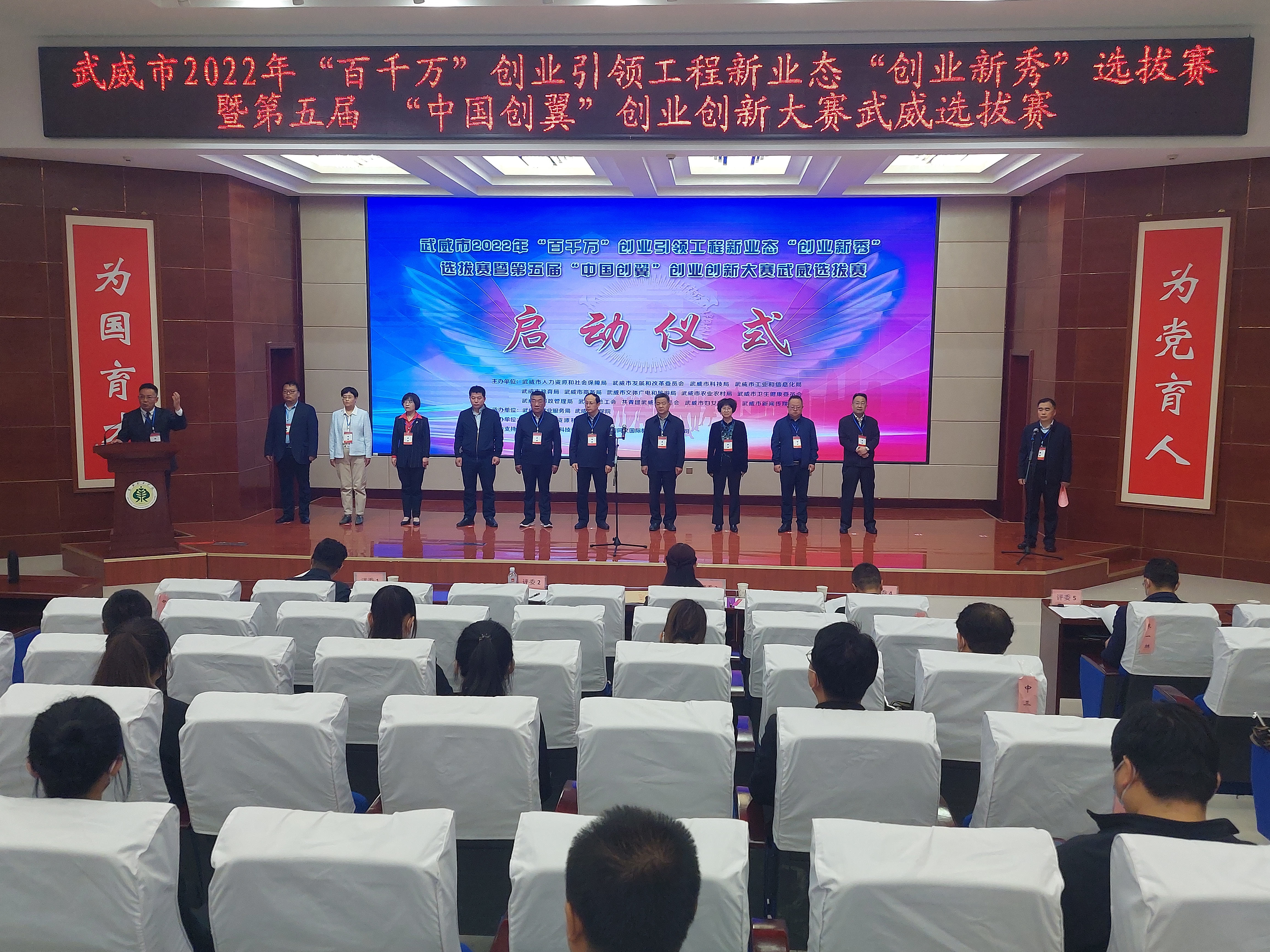 5月14日上午,武威市 2022 年“百千萬(wàn)”創(chuàng)業(yè)引領(lǐng)工程新業(yè)態(tài)“創(chuàng)業(yè)新秀”選拔賽暨第五屆“中國(guó)創(chuàng)翼”創(chuàng)業(yè)創(chuàng)新大賽武威選拔賽啟動(dòng)儀式在我校菁英廳舉行。啟動(dòng)儀式由市人社局黨組成員、市就業(yè)局局長(zhǎng)魏斌主持,學(xué)校黨委書(shū)記、校長(zhǎng)趙明介紹了大賽籌備情況,并表示“學(xué)校高度重視本次大賽的組織承辦工作,健全賽制機(jī)制,完善服務(wù)保障,順利完成了大賽籌備各項(xiàng)工作”。武威市人社局黨組書(shū)記、局長(zhǎng)陳昱川做了熱情洋溢的致辭,他指出“本次大賽是我市深入貫徹落實(shí)黨中央、國(guó)務(wù)院,省委省政府和市委市政府就業(yè)優(yōu)先政策,助推武威經(jīng)濟(jì)社會(huì)高質(zhì)量發(fā)展的務(wù)實(shí)舉措?!?/p>
