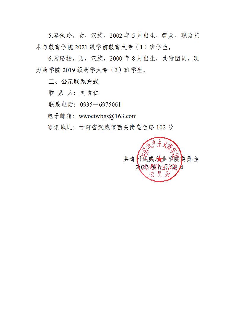 關(guān)于2022年“武威職業(yè)學(xué)院大學(xué)生自強(qiáng)之星”評選結(jié)果的公示