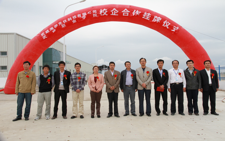 2012年9月24日下午,在武威新能源裝備制造基地海潤光伏科技有限責任公司,隆重舉行武威職業(yè)學院與武威海潤光伏科技有限責任公司校企合作掛牌儀式。出席本次活動的領導有學院副院長王宏、副院長翟存祥、武威新能源裝備制造產(chǎn)業(yè)園區(qū)管委會主任助理胡巍、武威海潤光伏科技有限責任公司總經(jīng)理談進、學院招生就業(yè)處副處長李亞梅。能源工程系師生代表、園區(qū)管委會、海潤光伏科技有限責任公司相關(guān)人員共計60余人參加了活動。