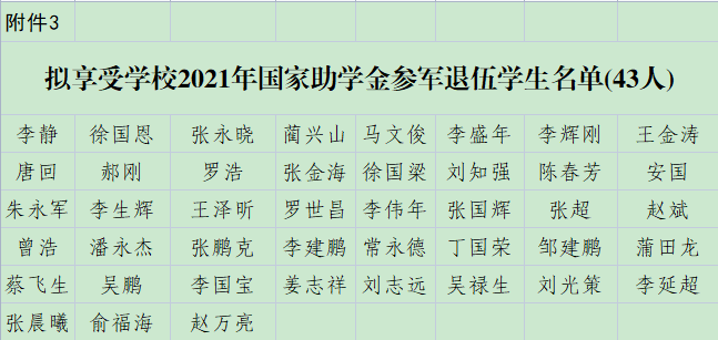 關(guān)于補(bǔ)發(fā)退役學(xué)生專(zhuān)項(xiàng)助學(xué)金的公示