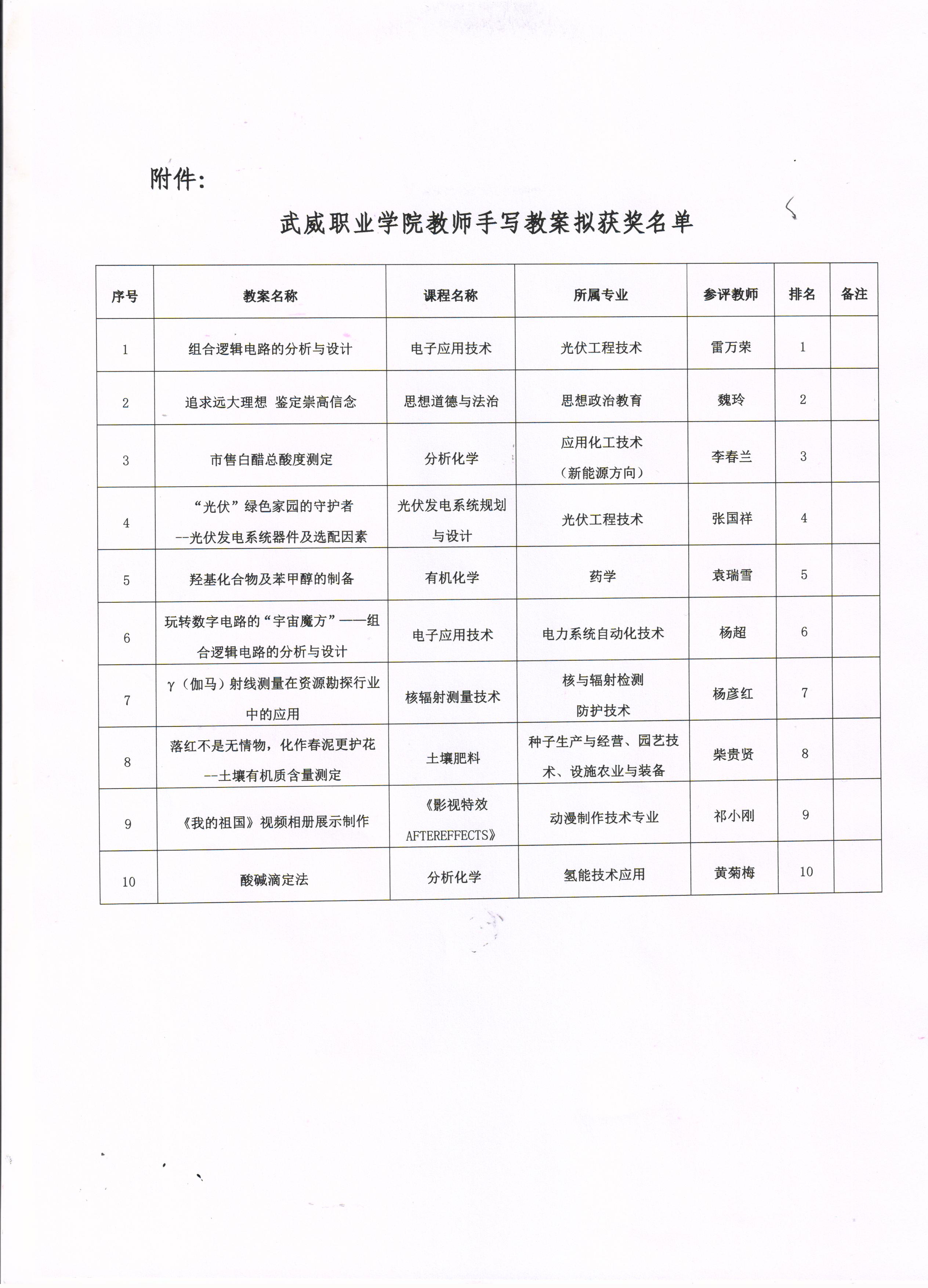 關(guān)于教師手寫教案打比賽評(píng)選結(jié)果的公示