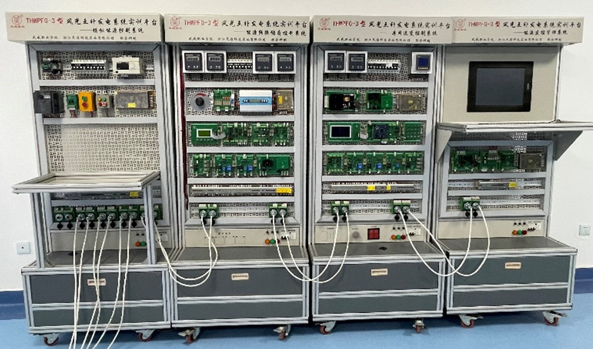 本實訓室擁有風光互補發(fā)電實訓系統(tǒng)1套,其主要由光伏供電裝置、光伏供電系統(tǒng)、風力供電裝置、風力供電系統(tǒng)、模擬能源控制系統(tǒng)、能源轉換儲存控制系統(tǒng)、并網(wǎng)逆變控制系統(tǒng)、能源監(jiān)控管理系統(tǒng)組成,各裝置和系統(tǒng)具有獨立的功能,可以組合成光伏發(fā)電實訓系統(tǒng)、風力發(fā)電實訓系統(tǒng)。本實訓室主要服務于光伏工程技術及相近專業(yè)開設的光伏發(fā)電技術分析與應用、光伏材料的加工與檢測、光伏電池的生產(chǎn)加工與維護、光伏控制器拆裝與維修、光伏器件的組裝與維護等課程。