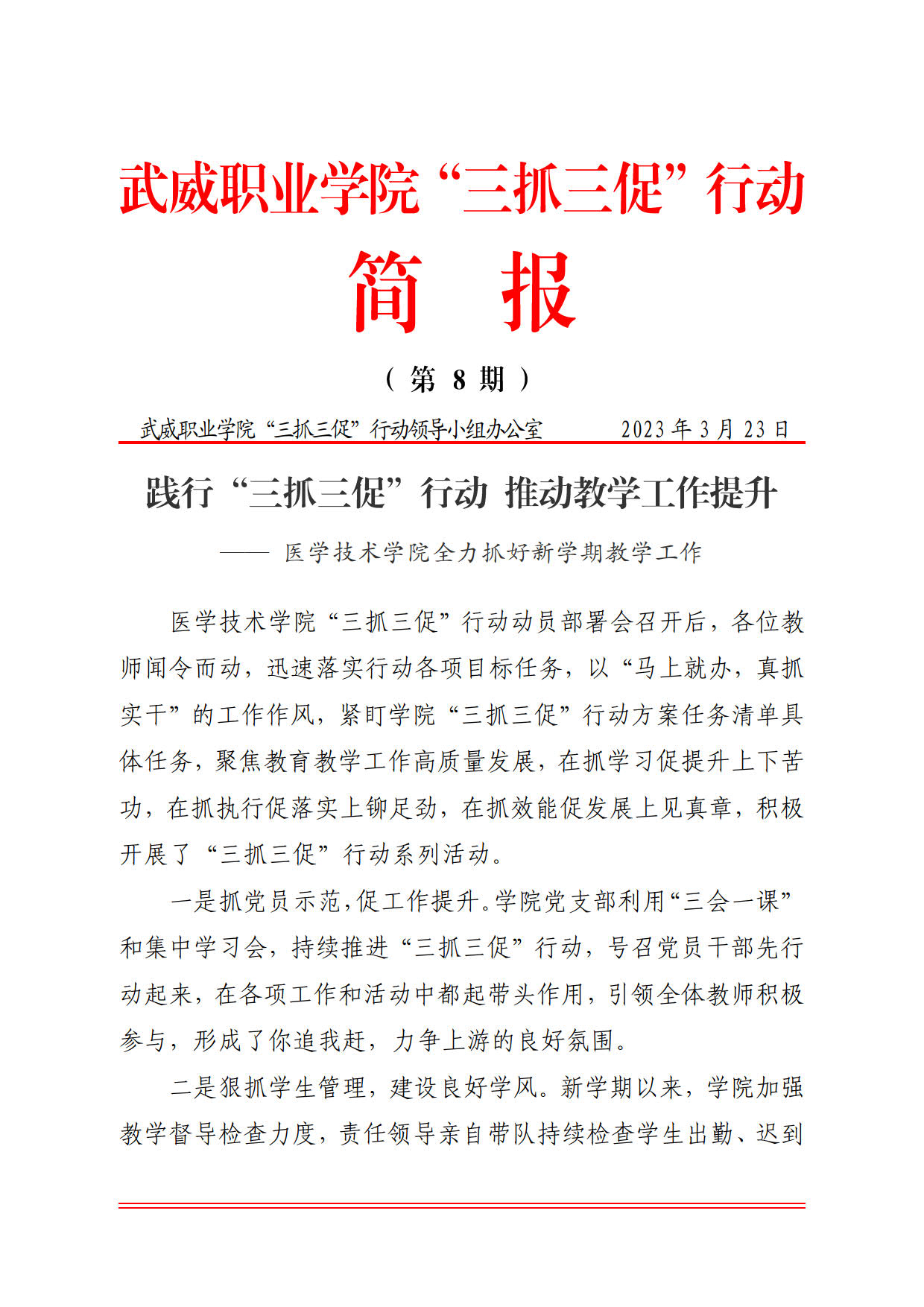 簡報(bào)第8期:踐行“三抓三促”行動(dòng) 推動(dòng)教學(xué)工作提升