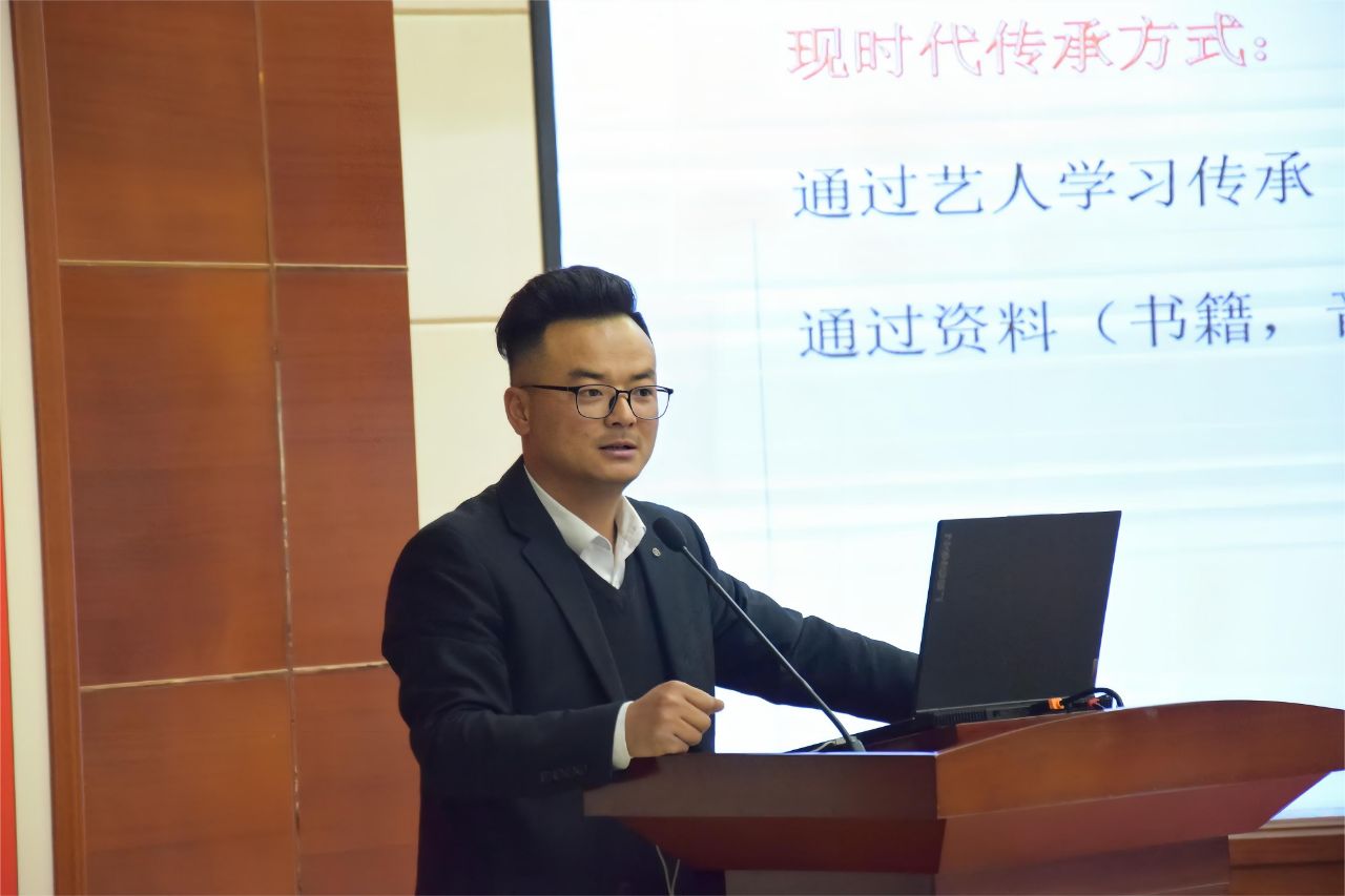 賈旭峰是近年來活躍在武威非遺舞臺上的一顆新星,他向同學(xué)們介紹了涼州賢孝的腔調(diào)、唱法及唱詞涵義。賈旭峰飽含深情地介紹了自己做為一名新時代的青年,去做涼州賢孝傳唱這樣古老的工作,不被他人理解、深受嘲諷的情況下堅持信念、不斷創(chuàng)新的心路歷程,如今他已是擁有近十萬粉絲的網(wǎng)絡(luò)達人,為涼州賢孝的傳播做出了貢獻。同時,他也呼吁同學(xué)們擔當起振興傳統(tǒng)文化的重任,讓非遺傳承流光溢彩。講座最后,同學(xué)們還饒有興致地向賈旭峰學(xué)習(xí)演唱了賢孝片斷。