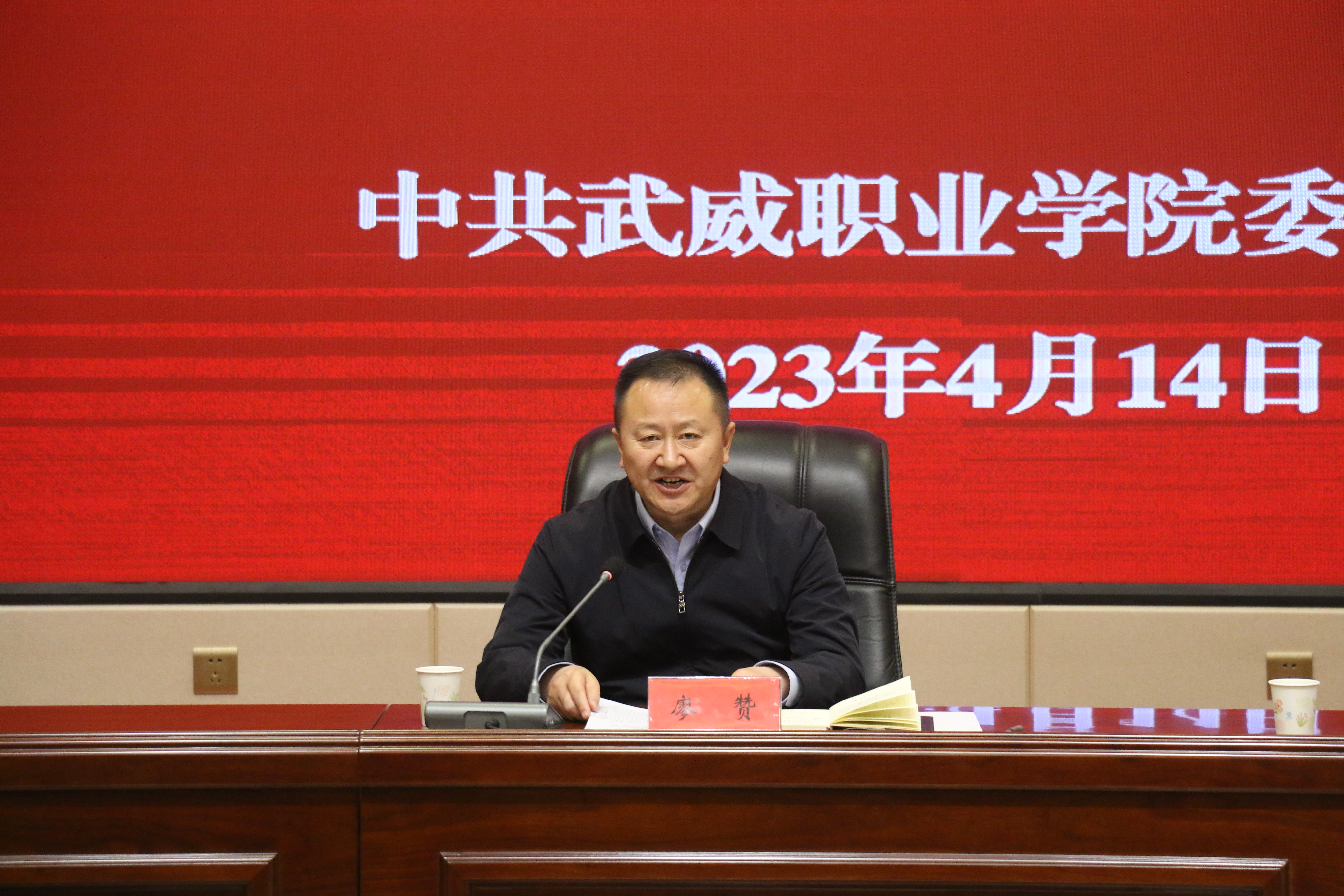 4月14日下午,學(xué)校召開學(xué)習(xí)貫徹習(xí)近平新時代中國特色社會主義思想主題教育動員部署會議。省委第十巡回指導(dǎo)組副組長、省景泰川電力提灌水資源利用中心黨委委員、副主任廖贊到會指導(dǎo)并講話。學(xué)校黨委書記、校長、主題教育領(lǐng)導(dǎo)小組組長趙明主持會議,傳達(dá)中央主題教育工作會議精神和省委主題教育動員部署會議精神并作動員講話。