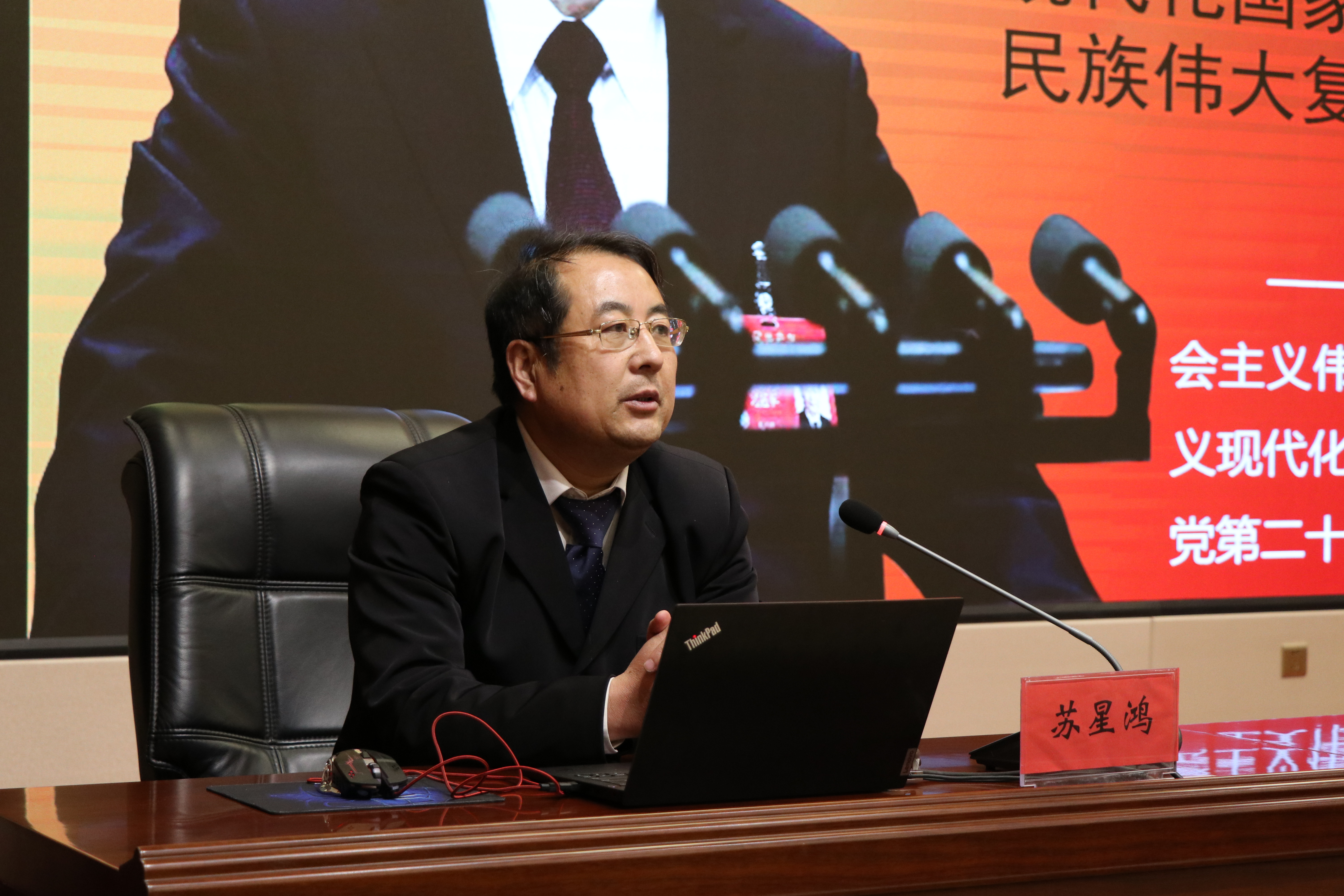 蘇星鴻教授以《深刻把握黨的二十大精神的核心要義》為題,從黨的二十大召開的歷史背景和重大意義、過去五年的工作和新時(shí)代十年的偉大變革、開辟馬克思主義中國(guó)化時(shí)代化新境界的科學(xué)內(nèi)涵、新時(shí)代新征程中國(guó)共產(chǎn)黨使命任務(wù)的豐富內(nèi)涵、以黨的自我革命推進(jìn)偉大的社會(huì)革命的實(shí)踐意義和“五個(gè)必由之路”的戰(zhàn)略意義六個(gè)方面進(jìn)行了深入淺出的闡述,對(duì)師生深刻理解黨的二十大精神具有很強(qiáng)的啟發(fā)意義。