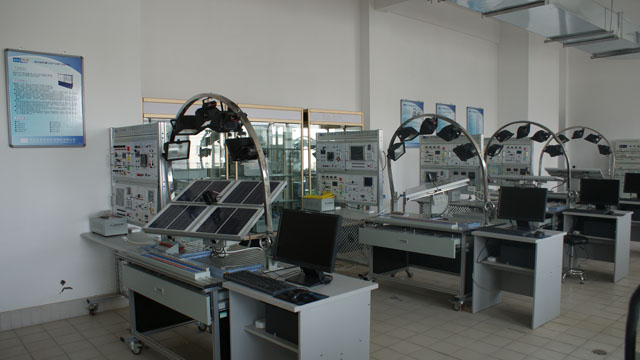 太陽能輻射觀測系統(tǒng)能夠測試總輻射、凈全輻射、直射、散射、反射五種輻射量。太陽能氣象觀測系統(tǒng)能夠測量屋頂當(dāng)前的風(fēng)速,風(fēng)向,溫度,雨量,濕度等。太陽能光伏發(fā)電系統(tǒng)應(yīng)用平臺由我院和湖北眾友科技有限公司共同開發(fā),該實訓(xùn)裝置可以演示在不同光照強(qiáng)度下太陽電池組件發(fā)電量的變化、模擬光伏發(fā)電系統(tǒng)的發(fā)電過程、演示離網(wǎng)型逆變器的工作原理及太陽能控制器的工作原理,為學(xué)生訓(xùn)練動手能力、增強(qiáng)理論基礎(chǔ)提供了良好的實訓(xùn)實訓(xùn)條件,采用模塊化掛箱設(shè)計,有逐日模塊、環(huán)境監(jiān)控模塊實驗、控制器模塊實驗、逆變器模塊實驗、顯示模塊實驗、負(fù)載模塊實驗、路燈模塊實驗 、應(yīng)用模塊實驗、新能源汽車模塊實驗組成,能開展近35項相關(guān)模塊實訓(xùn)。此設(shè)備目前在太陽能應(yīng)用領(lǐng)域國內(nèi)屬于領(lǐng)先地位。