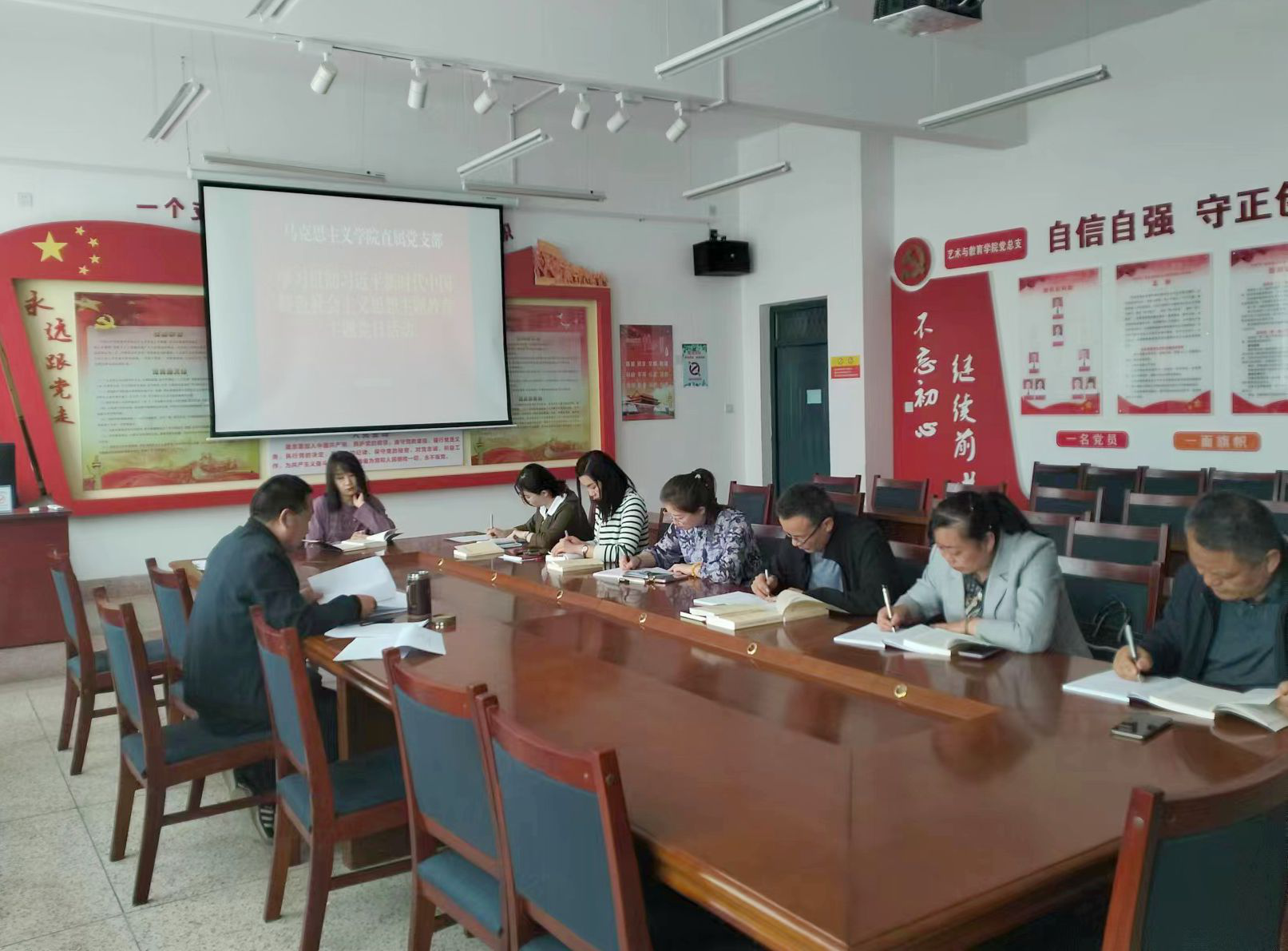 為進一步推動學習貫徹習近平新時代中國特色社會主義思想主題教育走深走實,營造良好的學習氛圍,近日,馬克思主義學院黨支部開展學習貫徹習近平新時代中國特色社會主義思想主題教育專題學習研討活動?;顒佑芍Р繒泟⑿闹鞒郑Р咳w黨員參加會議。