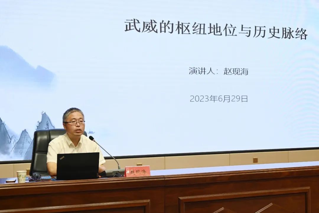 6月29日,2023年第二期《涼州講壇》在武威市開講,中國(guó)社會(huì)科學(xué)院古代史研究所古代通史研究室主任、研究員趙現(xiàn)海應(yīng)邀在武威職業(yè)學(xué)院作《武威的樞紐地位與歷史脈絡(luò)》的專題講座。市委宣傳部常務(wù)副部長(zhǎng)林艷軍主持。