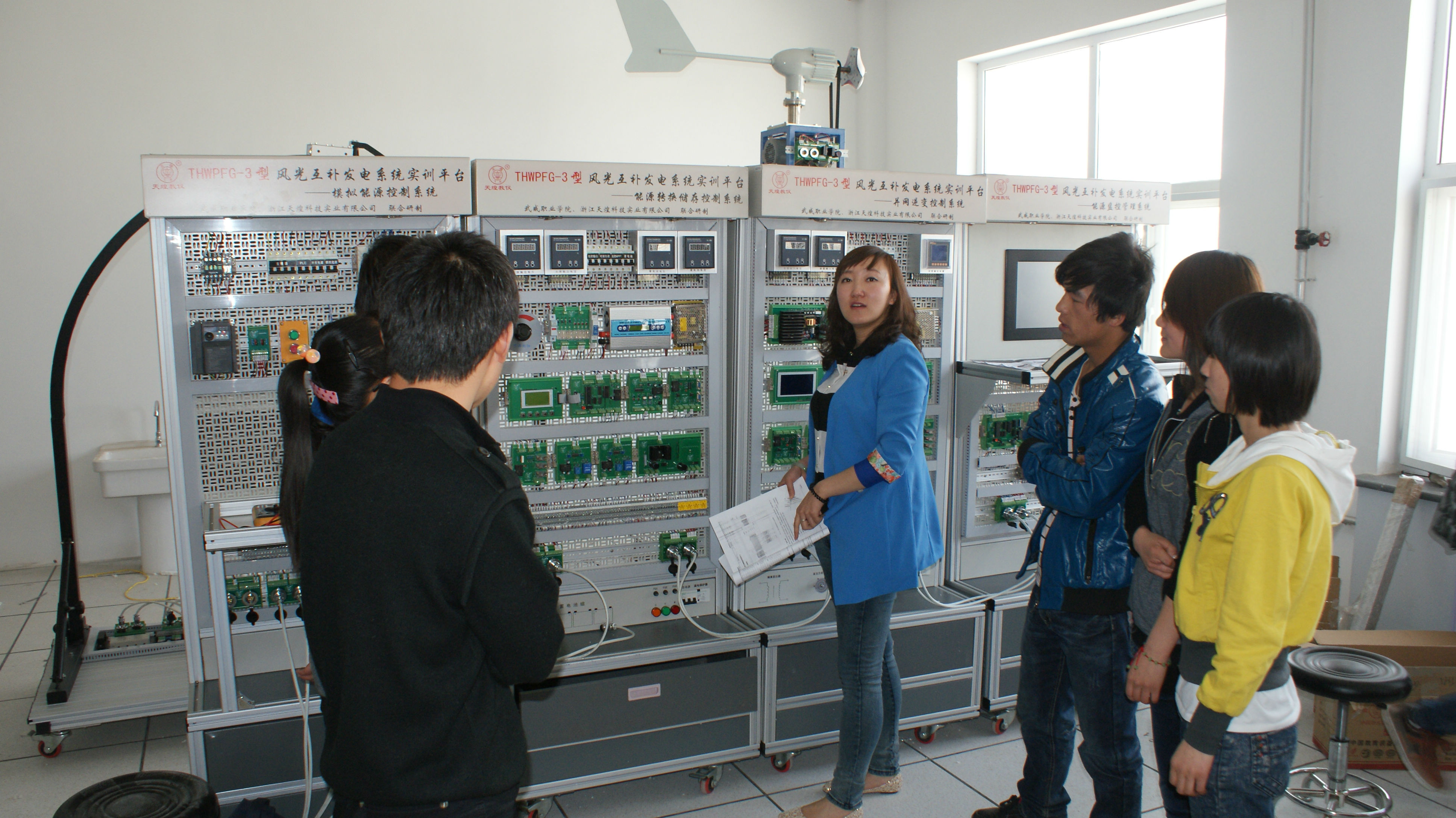 農(nóng)村能源模擬實(shí)訓(xùn)室現(xiàn)有設(shè)備主要有浙江天煌公司和我院合作研發(fā)的風(fēng)光互補(bǔ)發(fā)電實(shí)訓(xùn)平臺(tái)1套、太陽能光伏發(fā)電原理實(shí)訓(xùn)系統(tǒng)1套、計(jì)算機(jī)26臺(tái)套、電子白板、投影等設(shè)備。