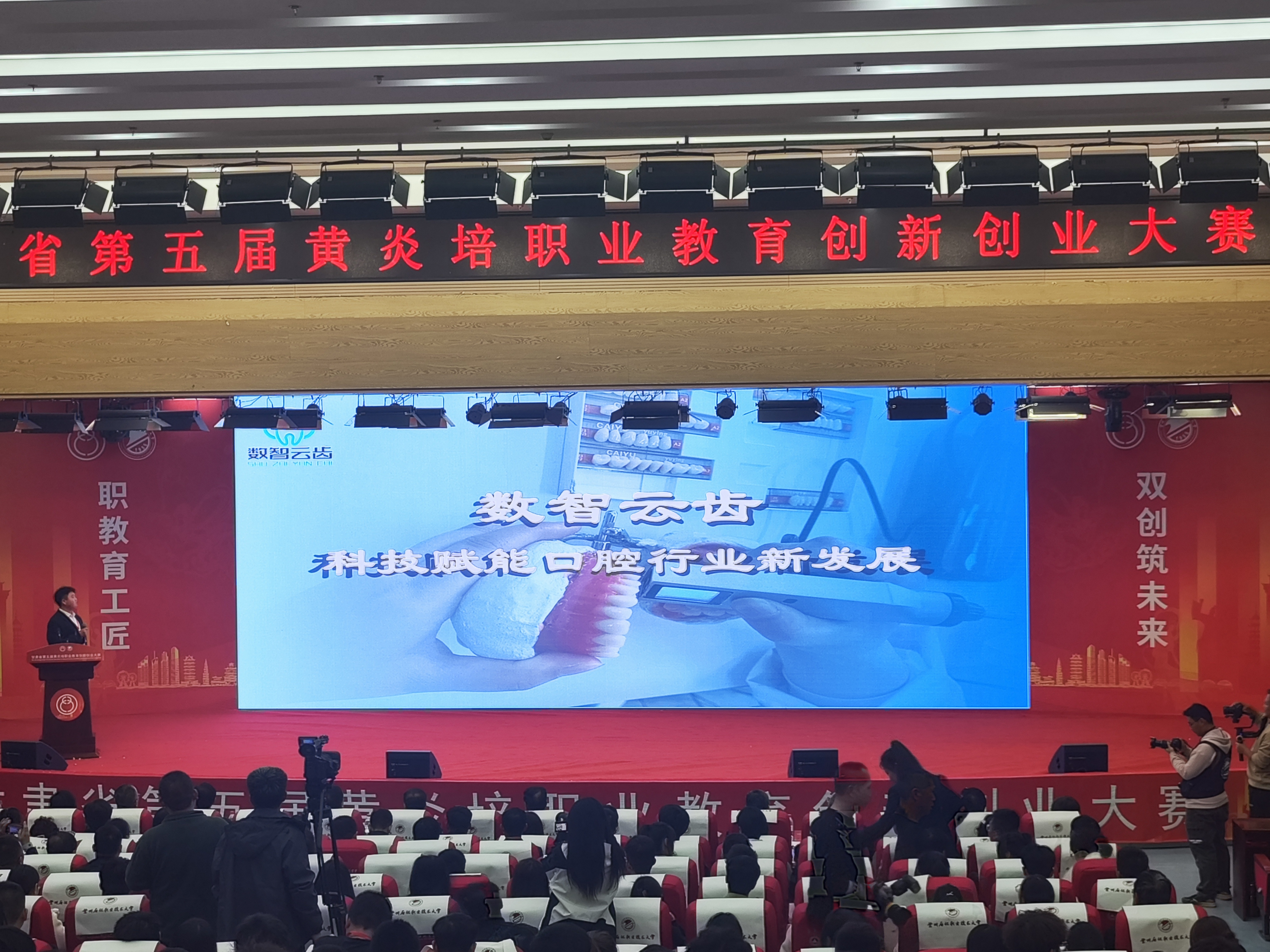 本屆大賽以“職教育工匠,雙創(chuàng)筑未來”為主題,設(shè)主題賽和專項賽,省內(nèi)47所院校近300名選手參加決賽,經(jīng)過激烈角逐,我校獲一等獎1項,三等獎4項,學(xué)校榮獲優(yōu)秀組織獎?!稊?shù)智云齒--科技賦能口腔行業(yè)新發(fā)展》項目在頒獎晚會代表優(yōu)秀項目進(jìn)行路演。