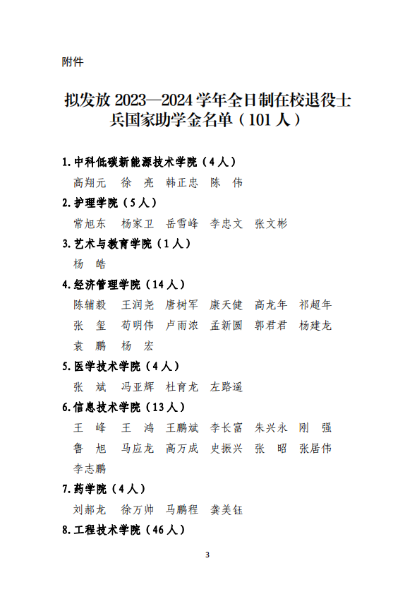 關(guān)于擬發(fā)放2023—2024學(xué)年全日制在校退役士兵國家助學(xué)金的公示
