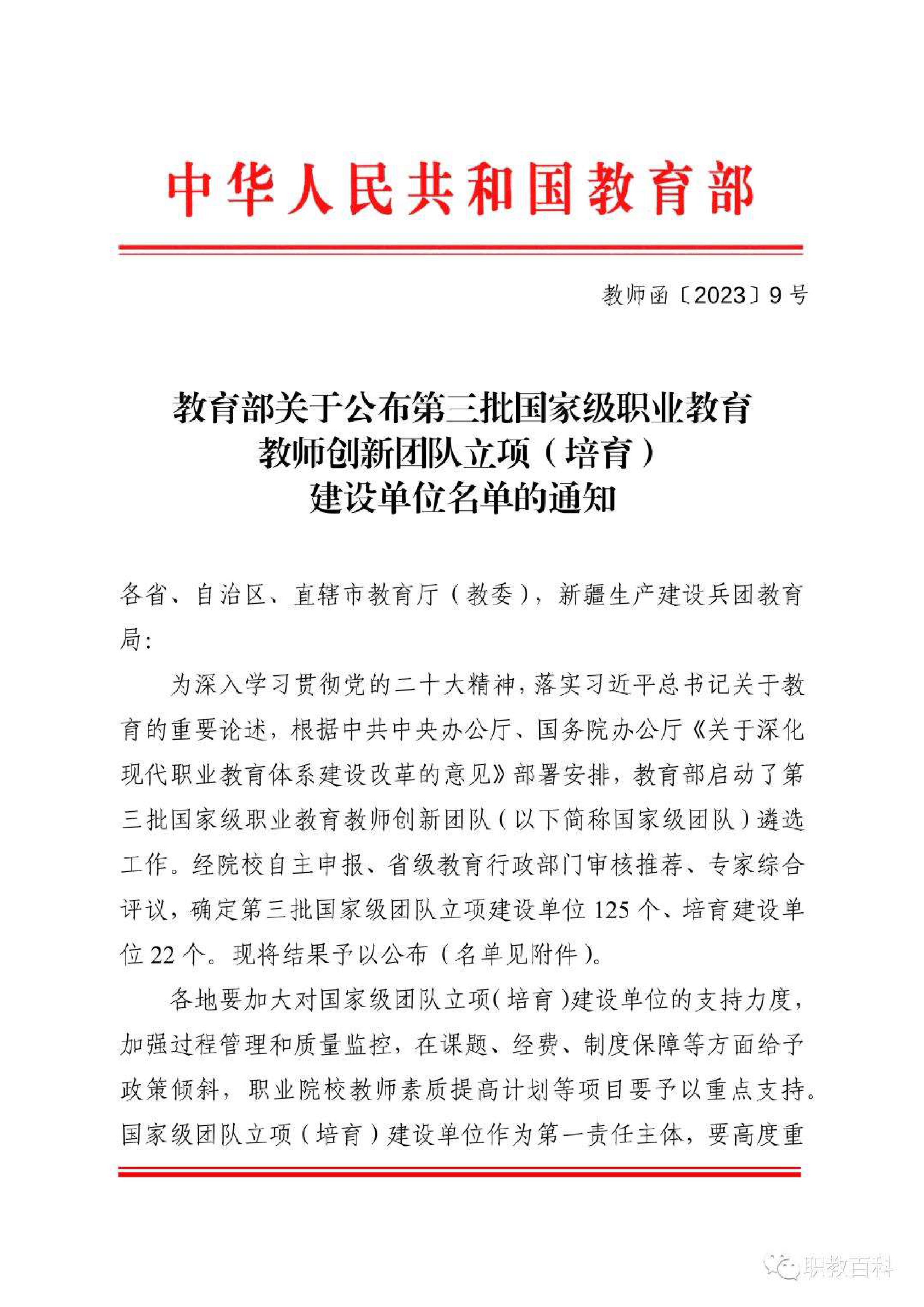 近日,教育部公布了《教育部關于公布第三批國家級職業(yè)教育教師創(chuàng)新團隊立項(培育)建設單位名單的通知》(教師函〔2023〕9號),學院黃述杰教授主持的“光伏工程技術”專業(yè)教師團隊成功入選。這是學校首次入選國家級職業(yè)教育教師創(chuàng)新團隊立項建設單位,實現(xiàn)了學校教學團隊“國家級”項目零的突破,也是學校“雙高”項目建設和高質量發(fā)展中取得的又一項國家級標志性成果。
