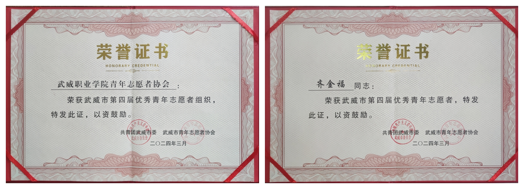 會(huì)議全面總結(jié)了2023年全市青年志愿服務(wù)工作情況,對(duì)獲得武威市第四屆優(yōu)秀志愿者組織和個(gè)人的集體和單位頒發(fā)榮譽(yù)證書。我校青年志愿者協(xié)會(huì)被評(píng)為“優(yōu)秀志愿者組織”,工程技術(shù)學(xué)院學(xué)生齊金福被評(píng)為“優(yōu)秀志愿者”。