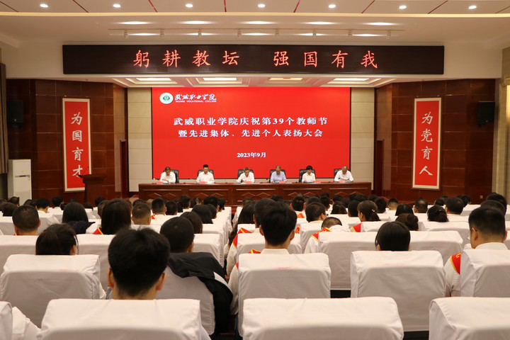 9月8日上午,在第39個教師節(jié)即將來臨之際,武威職業(yè)學(xué)院慶祝2023年教師節(jié)暨先進(jìn)集體和先進(jìn)個人表揚(yáng)大會在菁英廳隆重舉行。學(xué)院黨委書記、校長趙明主持會議并講話,在家領(lǐng)導(dǎo)班子成員出席會議,中層管理干部、受表揚(yáng)的教師和師生代表參加會議。