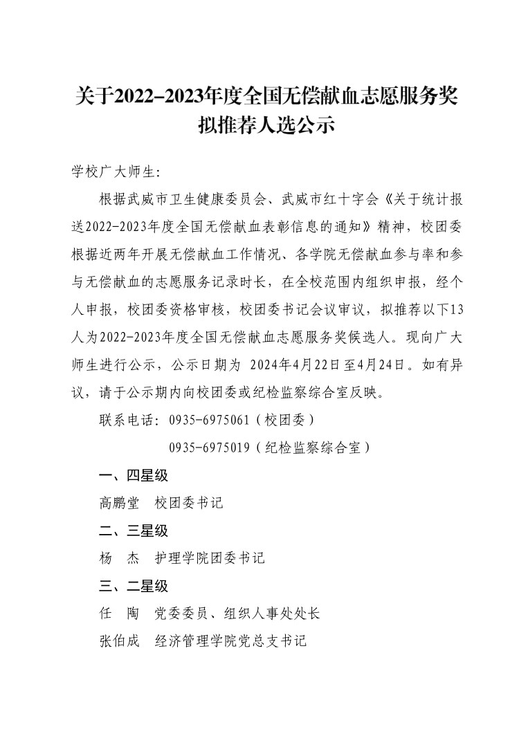 關(guān)于2022-2023年度全國(guó)無(wú)償獻(xiàn)血志愿服務(wù)獎(jiǎng)擬推薦人選公示