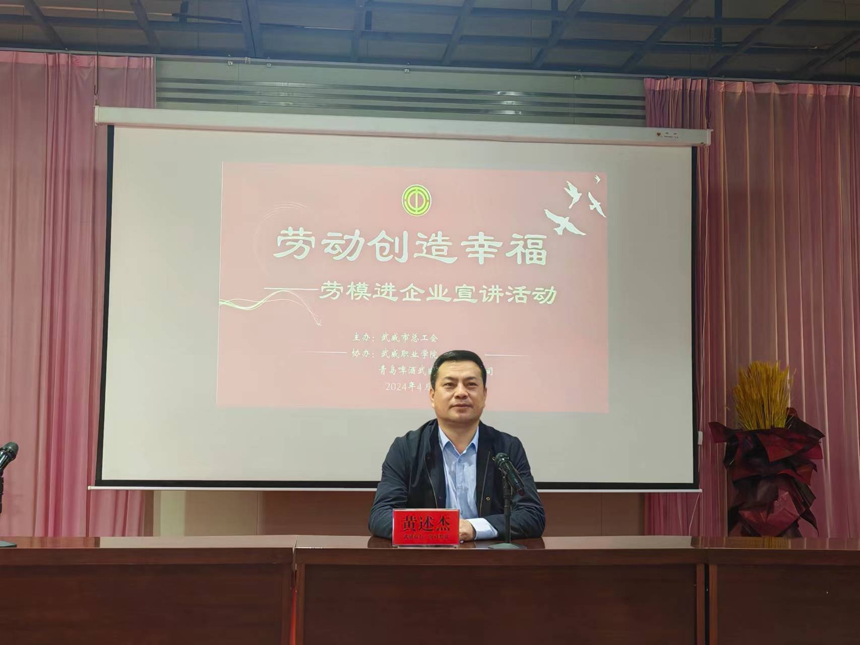 活動邀請武威市五一勞動獎?wù)芦@得者、中科低碳新能源技術(shù)學(xué)院院長黃述杰為現(xiàn)場職工作了一場生動的宣講,他以“勞動創(chuàng)造幸?!睘橹黝},結(jié)合自身奮斗經(jīng)歷,運(yùn)用通俗易懂的語言,圍繞勞模工匠精神的基本內(nèi)涵、基本要求等方面,為大家進(jìn)行深入淺出地闡述和講解。他的宣講深深感染了在場的每一個(gè)人,大家紛紛表示,要以身邊的勞模工匠為榜樣,立足本職崗位,做好本職工作,為推進(jìn)武威高質(zhì)量發(fā)展貢獻(xiàn)自己的力量。
