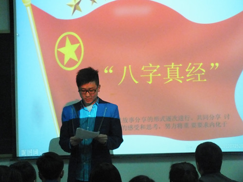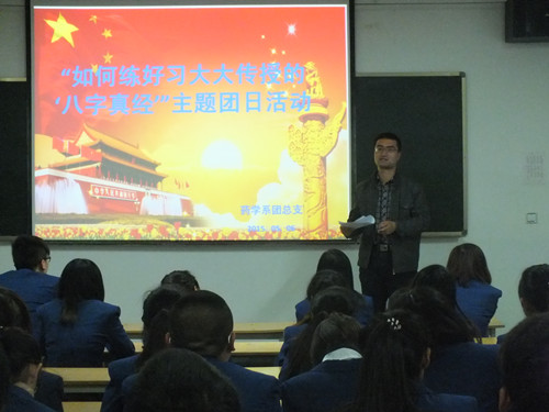 主題團(tuán)會(huì)上,系學(xué)生會(huì)干部和系團(tuán)干部以及各班學(xué)生代分別就習(xí)總書(shū)記的“八字真經(jīng)”的精神通過(guò)講故事,說(shuō)道理等形式進(jìn)行了表達(dá),活動(dòng)氣氛熱烈,大家踴躍發(fā)言,從生活、學(xué)習(xí)各個(gè)方面的小事說(shuō)起,就“八字真經(jīng)”的內(nèi)涵進(jìn)行了深入的剖析。