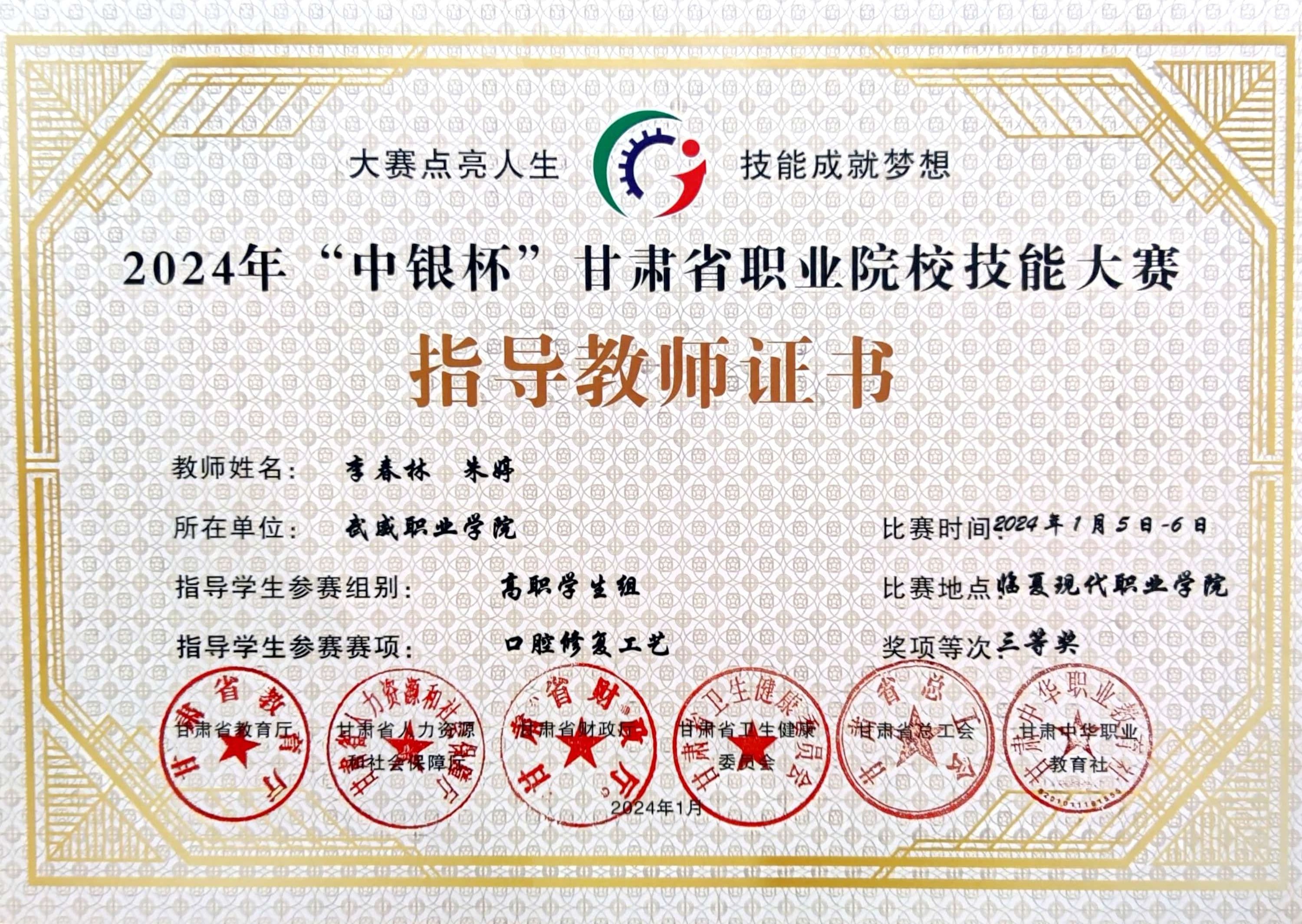 在2024年“中銀杯”甘肅省職業(yè)院校技能大賽中我院多組學(xué)生、指導(dǎo)教師獲得高職組團體一等獎等多項獎項。