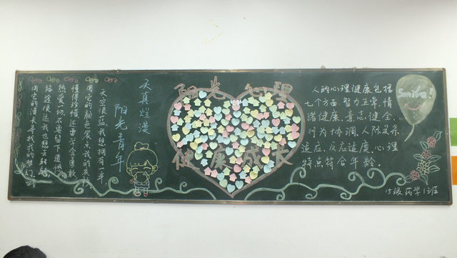 為了迎接評比,各班都做了充分的準(zhǔn)備,認(rèn)真學(xué)習(xí)了解大學(xué)生心理健康日相關(guān)知識,精心構(gòu)思了板報主題內(nèi)容,從心理健康輔導(dǎo)、心理健康實例等方面為出發(fā)點,以完善自我心理健康為關(guān)鍵點,充分運用了繪畫、故事等素材,從多方面介紹了心理健康的核心與重要性。最后,15級藥學(xué)1班《陽光心理》和15級藥學(xué)2班的《心靈診所》贏得了一致好評,14級藥學(xué)2班《健康你我》清新可愛的畫風(fēng),也頗受大家的喜愛。