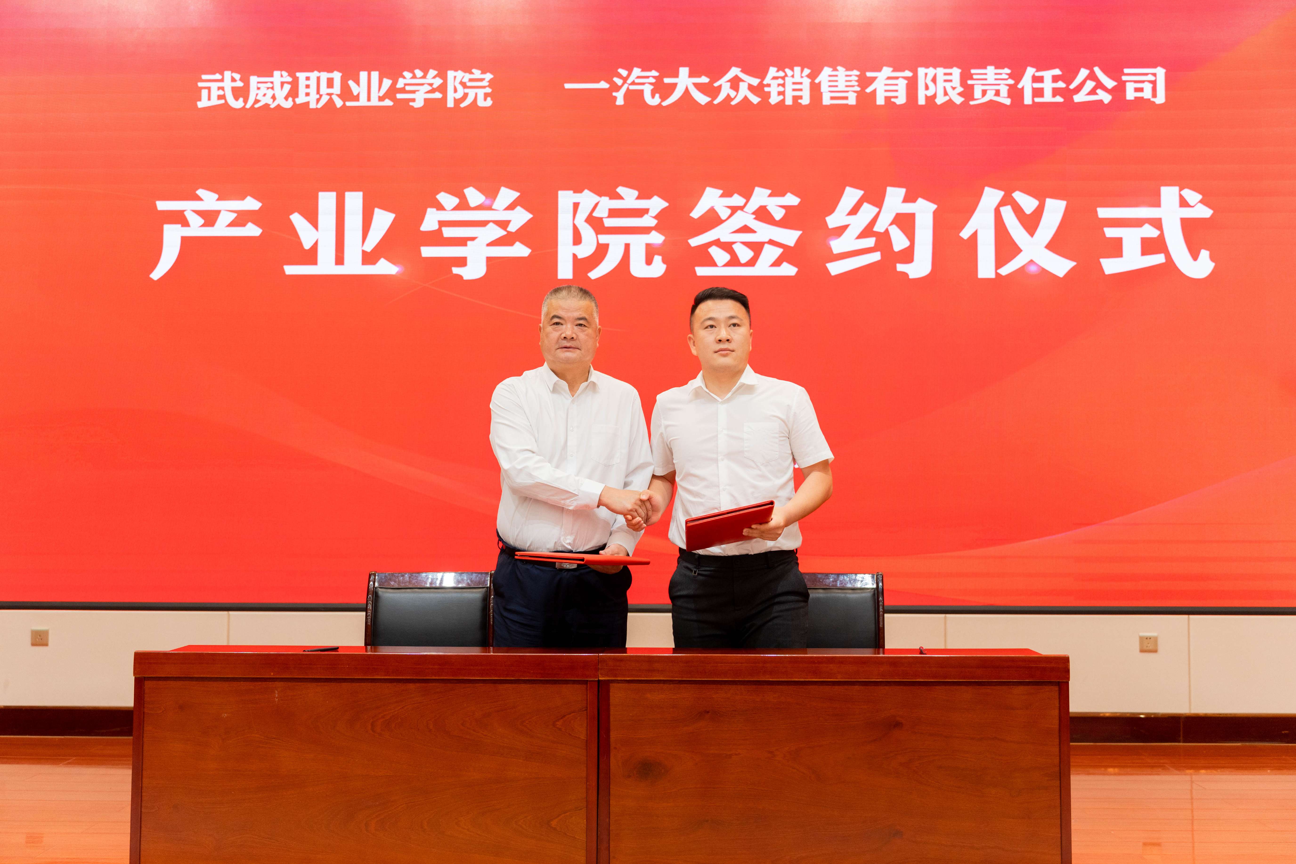 授牌儀式后,武威市教育局黨組書記、局長王娟和武威職業(yè)學院黨委書記王宏為綠色化工行業(yè)產(chǎn)教融合創(chuàng)新研究院揭牌,武威職業(yè)學院黨委委員、副校長王守云與一汽大眾有限責任公司相關負責同志簽約,共建產(chǎn)業(yè)學院。