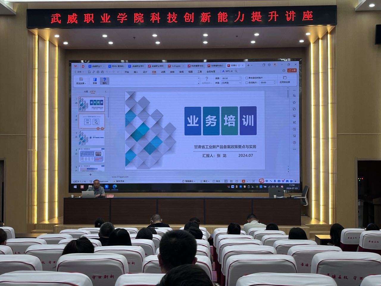 為進(jìn)一步提升學(xué)校教師科研創(chuàng)新能力,掌握科技成果評(píng)價(jià)及新產(chǎn)品備案實(shí)施細(xì)則,7月3日上午,科技處邀請(qǐng)了甘肅省科學(xué)技術(shù)情報(bào)研究所專(zhuān)家蘇海龍和張龍研究員來(lái)我校開(kāi)展科研專(zhuān)題講座。教師們積極踴躍參加講座,認(rèn)真聆聽(tīng),收獲頗豐。