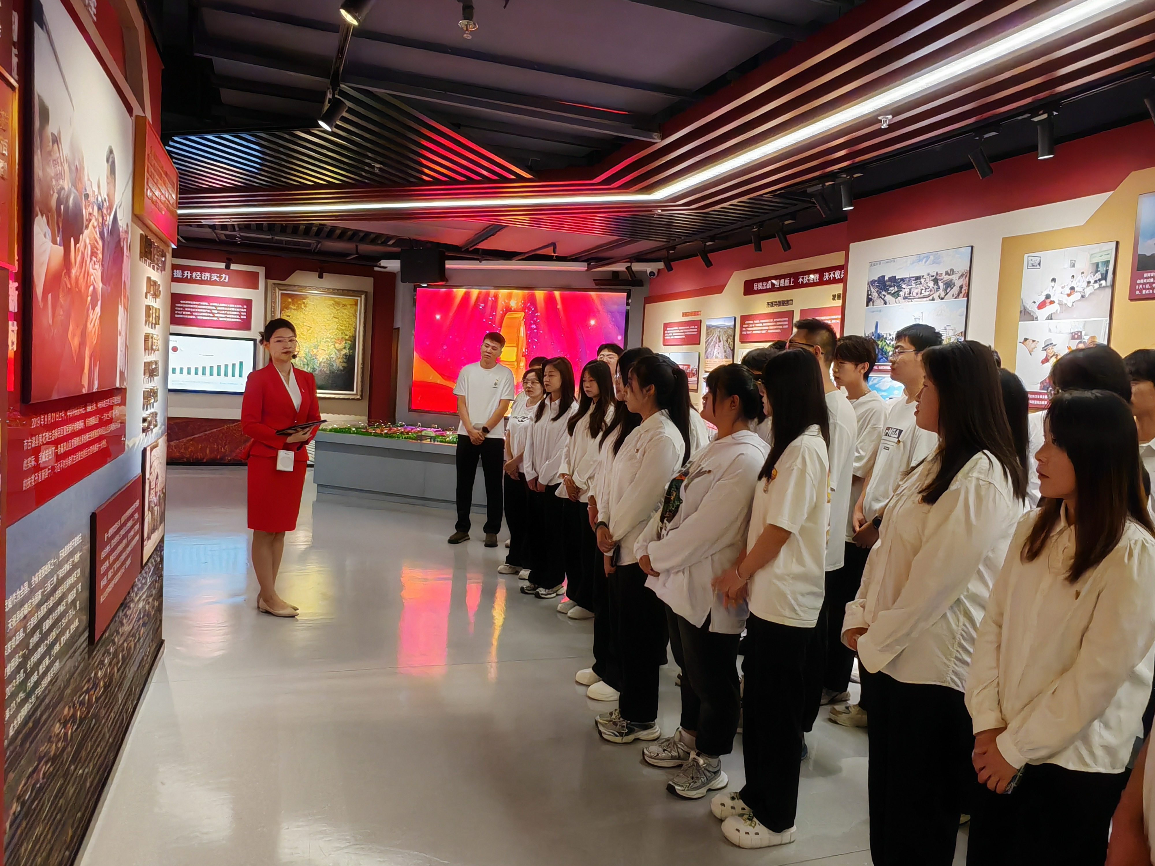 師生們在講解員的帶領(lǐng)下依次參觀了教育館的序廳、主廳、智慧黨建廳、紅色文創(chuàng)廳、尾廳以及初心講堂。每一個展廳都承載著豐富的歷史內(nèi)涵,記錄了中國共產(chǎn)黨在不同歷史時期帶領(lǐng)人民取得的偉大成就。同學(xué)們認(rèn)真聆聽講解員的解說,仔細(xì)觀看館內(nèi)展出的珍貴圖片、文獻(xiàn)資料、歷史實物和視頻影像,全面了解了武威人民在黨的領(lǐng)導(dǎo)下,一步步克服困難、取得勝利的過程。隨后師生們觀看了紅色專題片《先鋒之光》。影片生動再現(xiàn)了無數(shù)革命先烈為了國家獨立、民族解放和人民幸福所付出的巨大犧牲與貢獻(xiàn),從影片中汲取了愛國、拼搏、團(tuán)結(jié)和克難的精神力量。