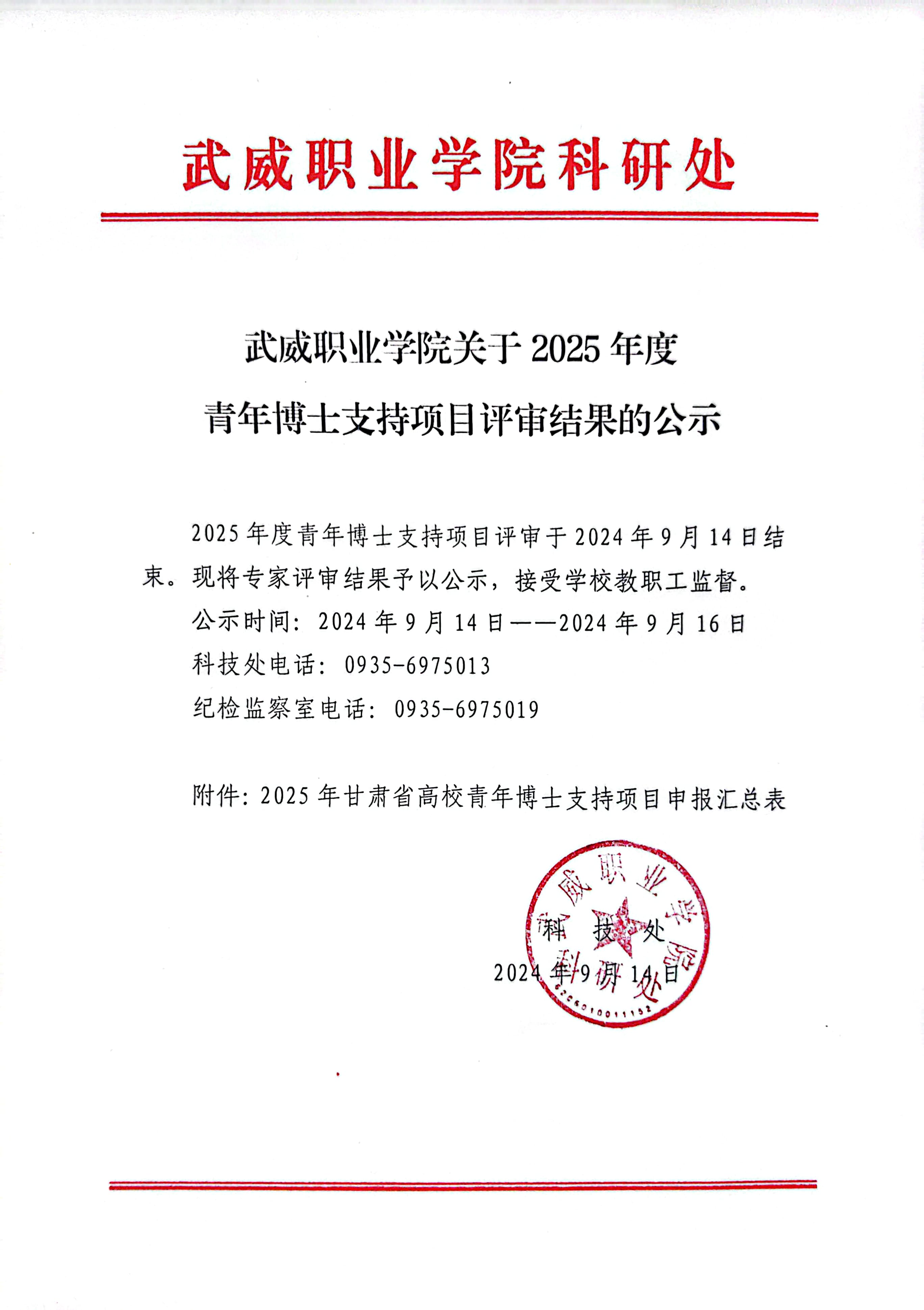 武威職業(yè)學(xué)院關(guān)于2025年度青年博士支持項(xiàng)目評(píng)審結(jié)果的公示