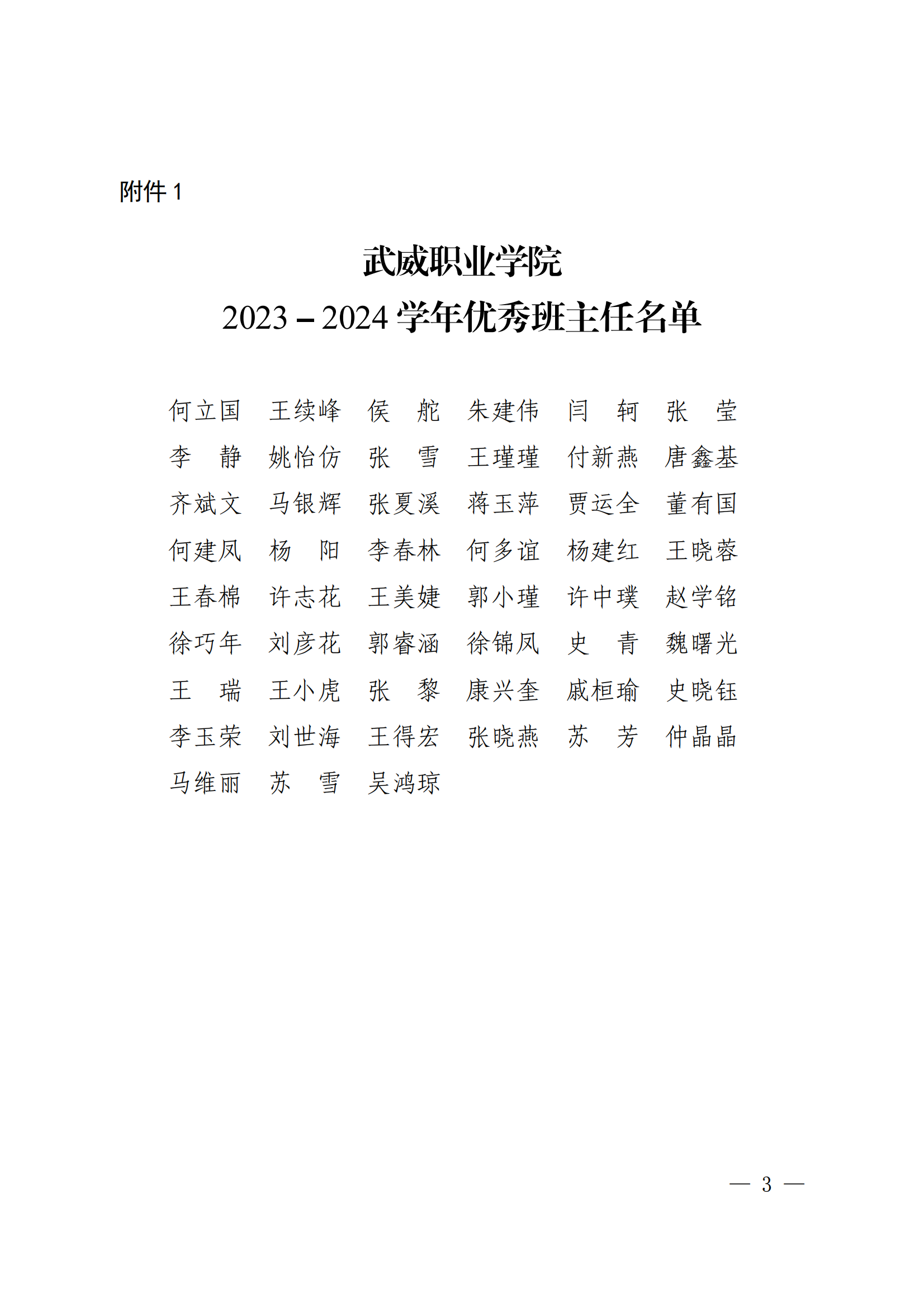 武威職業(yè)學院關于表揚2023-2024學年優(yōu)秀班主任、優(yōu)秀輔導員(專兼職)的決定