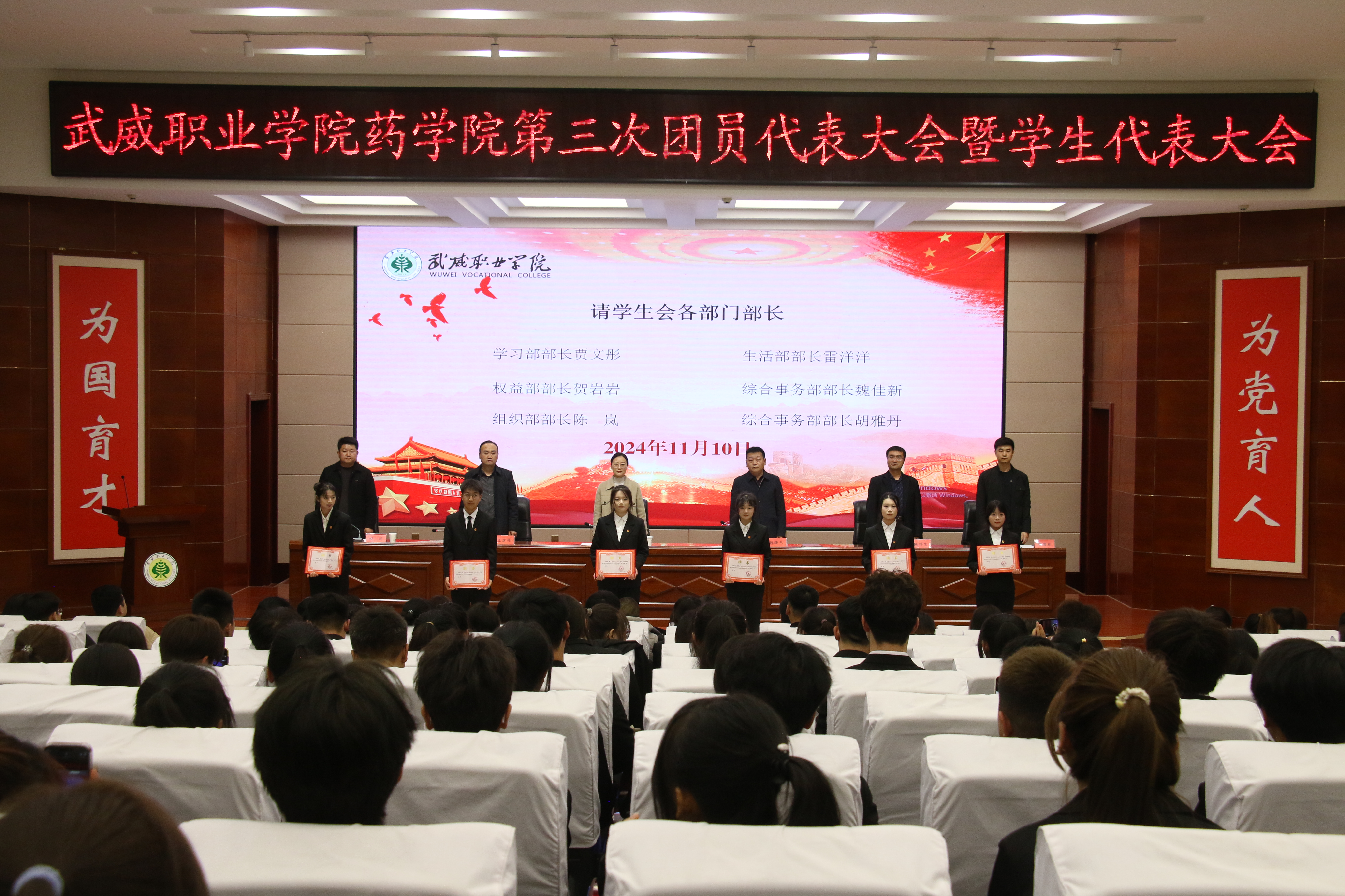 11月10日,藥學(xué)院第三次團(tuán)員代表大會(huì)暨學(xué)生代表大會(huì)在菁英廳順利召開(kāi)。藥學(xué)院副院長(zhǎng)馬琪、學(xué)生管理工作負(fù)責(zé)人魏曙光及師生代表共200余人參加會(huì)議。