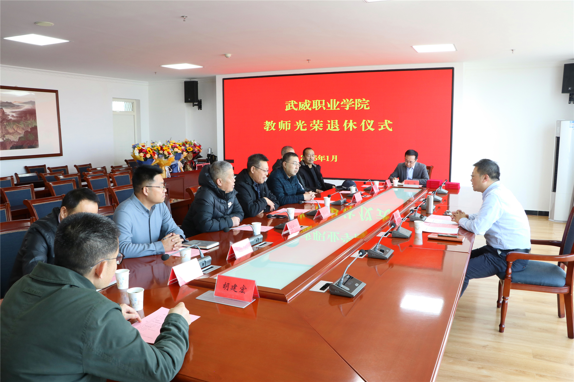 李海軍為退休教師頒發(fā)了退休證書并贈送了鮮花,感謝他們多年來為學(xué)校教育事業(yè)做出的貢獻。