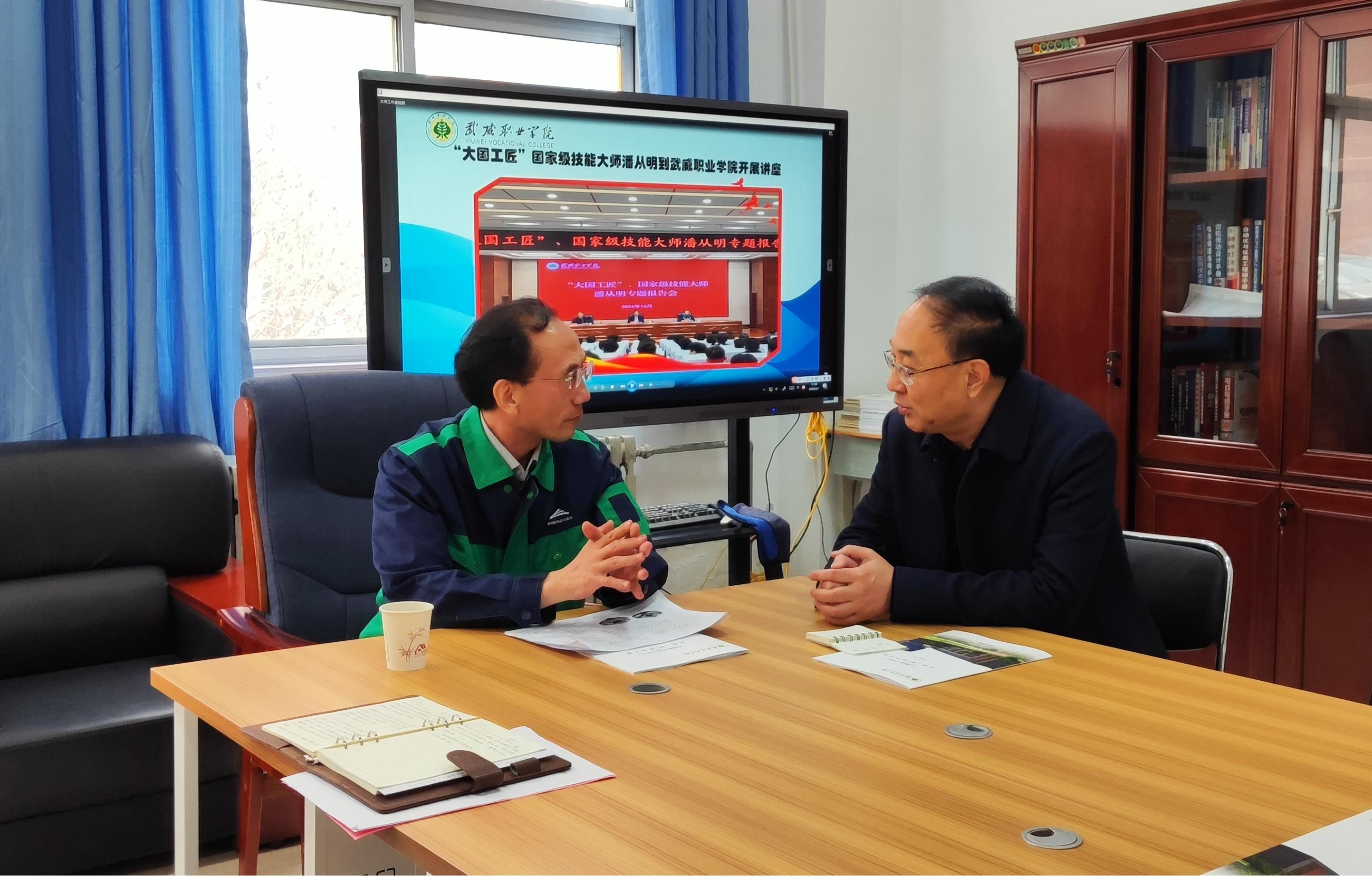 講座后,潘從明來到學(xué)校智能制造實訓(xùn)中心進行現(xiàn)場指導(dǎo),認真聽取了實訓(xùn)中心的實訓(xùn)場地、實訓(xùn)裝備、實訓(xùn)方式等情況,并與校領(lǐng)導(dǎo)及師生代表進行了深入交流。他勉勵師生傳承工匠精神,積極投身實踐,提高動手能力,在實踐中快速成長為高素質(zhì)技術(shù)技能型人才。
