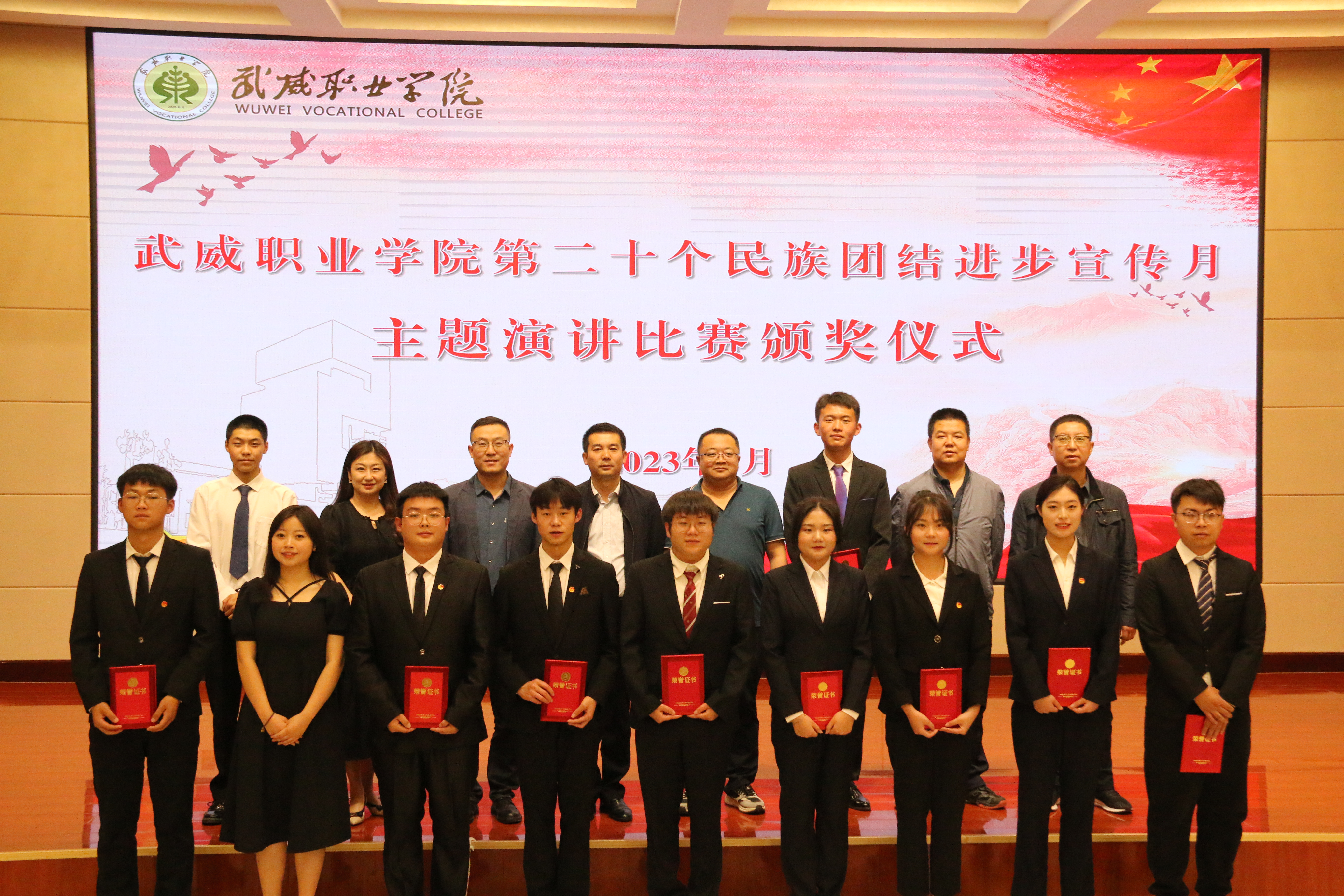 今年5月,是全省第20個民族團結(jié)進步宣傳月,為深入貫徹落實黨的二十大精神和習(xí)近平總書記關(guān)于加強和改進民族工作的重要思想,全面落實中央和省市關(guān)于民族工作的部署要求,5月31日晚,學(xué)校在菁英廳舉行“深入學(xué)習(xí)宣傳貫徹黨的二十大精神,有形有感有效鑄牢中華民族共同體意識”主題演講比賽。各二級學(xué)院輔導(dǎo)員、師生代表200余人參加活動。
