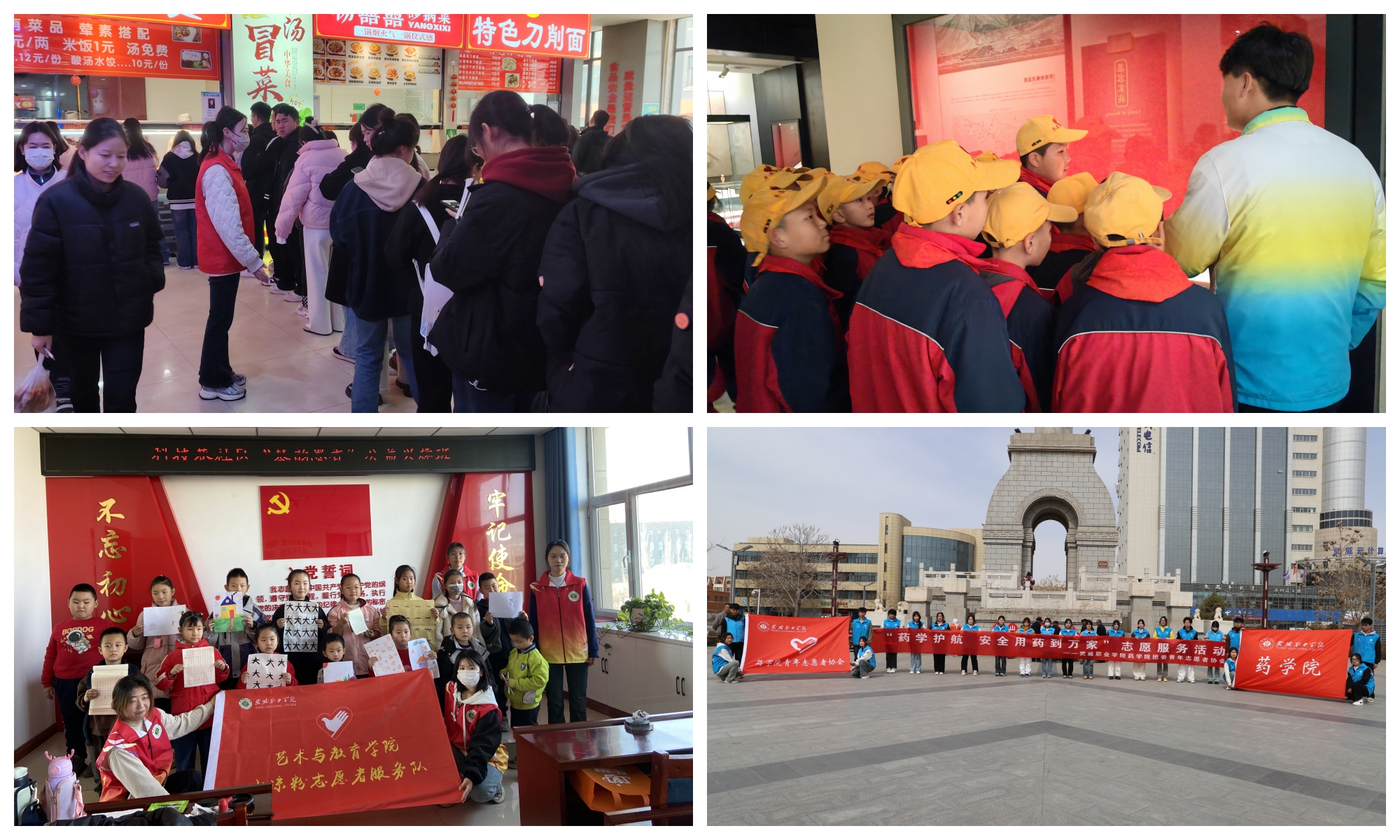 結(jié)合專業(yè)特色,開展志愿服務(wù)活動(dòng)。3月5日,現(xiàn)代農(nóng)業(yè)學(xué)院20余名志愿者在學(xué)校餐廳開展“食安校園 你我同行”志愿服務(wù)活動(dòng),普及食品安全科學(xué)知識(shí)。3月5日,經(jīng)濟(jì)管理學(xué)院組織旅游管理專業(yè)志愿者走進(jìn)博物館,向前來參觀的游客義務(wù)講解。3月15日,藝術(shù)與教育學(xué)院學(xué)前教育專業(yè)志愿者走進(jìn)科技巷社區(qū),為留守兒童帶去豐富的興趣活動(dòng),激發(fā)小朋友們對(duì)唱歌、舞蹈、書法、樂器演奏等特長的學(xué)習(xí)熱情。3月20日,醫(yī)學(xué)技術(shù)學(xué)院開展口腔衛(wèi)生健康宣傳志愿服務(wù)活動(dòng),倡議改善刷牙習(xí)慣,注重口腔健康。3月22日,藥學(xué)院志愿者在文化廣場開展“藥學(xué)護(hù)航,安全用藥到萬家”志愿服務(wù)活動(dòng),為市民們科普正確用藥知識(shí),講解安全用藥和藥品保存常識(shí),通過發(fā)放宣傳資料、現(xiàn)場講解等方式,詳細(xì)介紹藥品回收的重要意義。